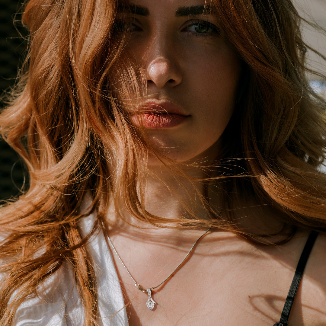 Melt her heart with this ALLURING BEAUTY necklace gift! The petite ribbon-shaped pendant is finished with 14K white gold over stainless steel, and is embellished with dainty clear crystals surrounded by a sparkling 7mm round-cut Cubic Zirconia.