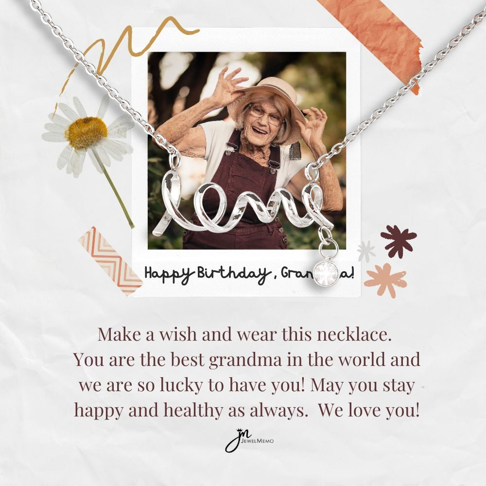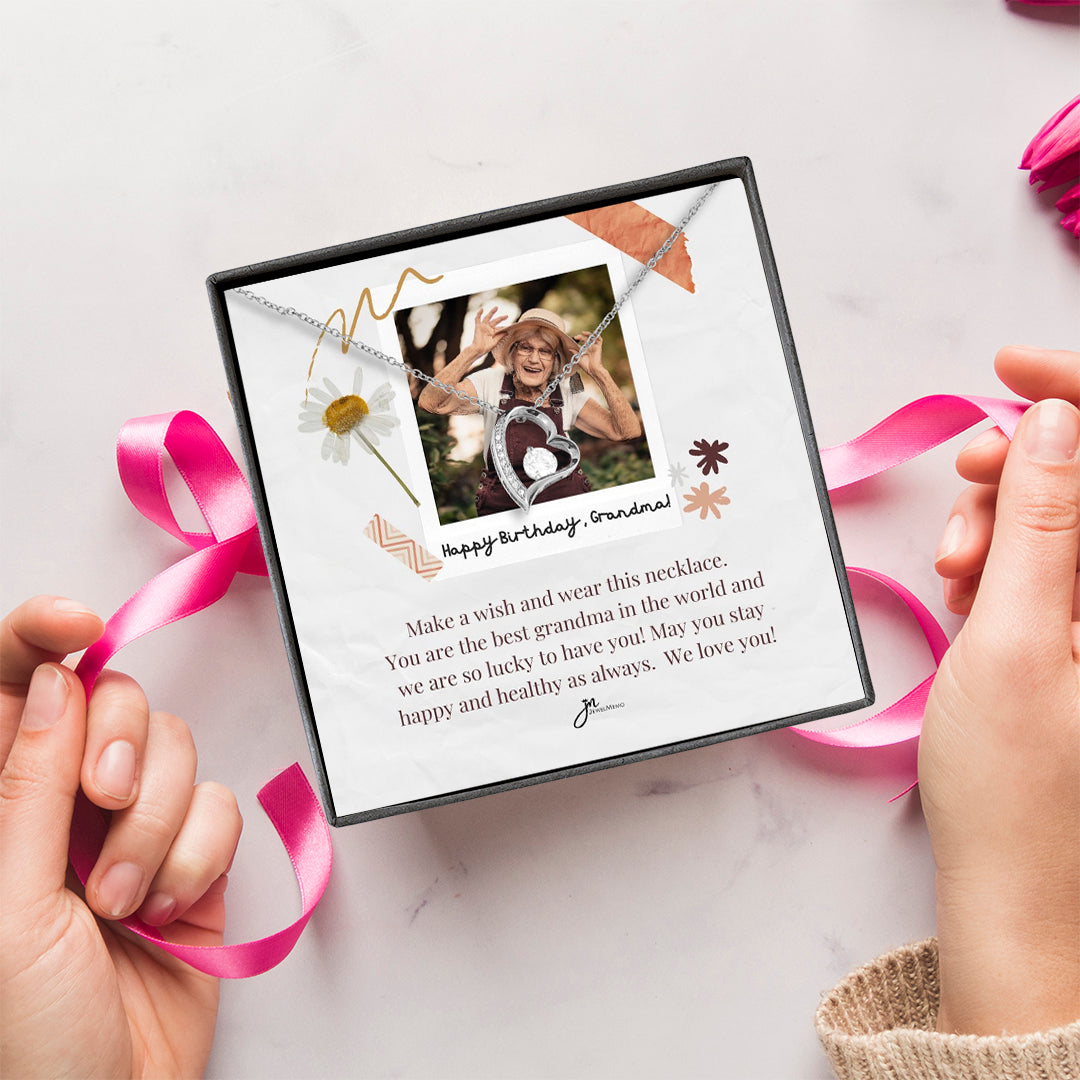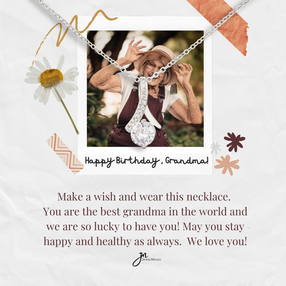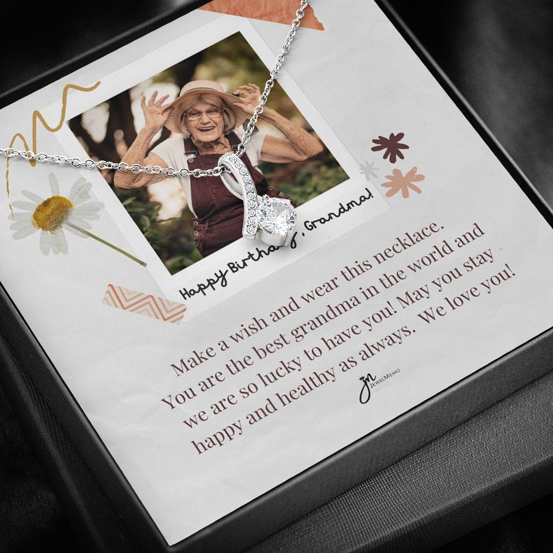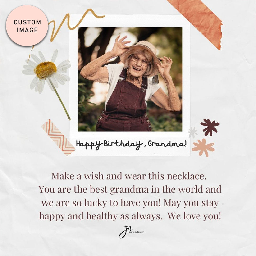 "Make a wish and wear this necklace. You are the best grandma in the world and we are so lucky to have you! May you stay happy and healthy as always. I love you!"