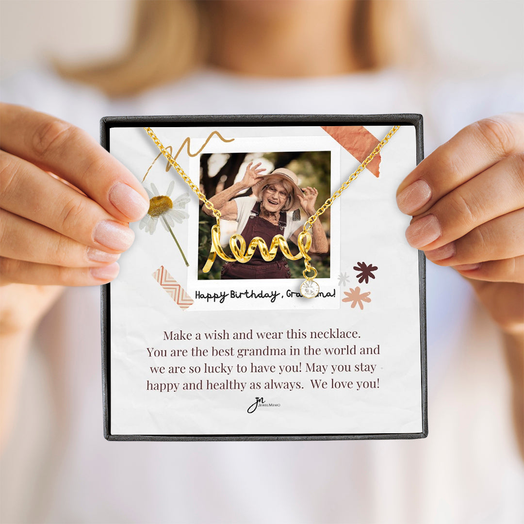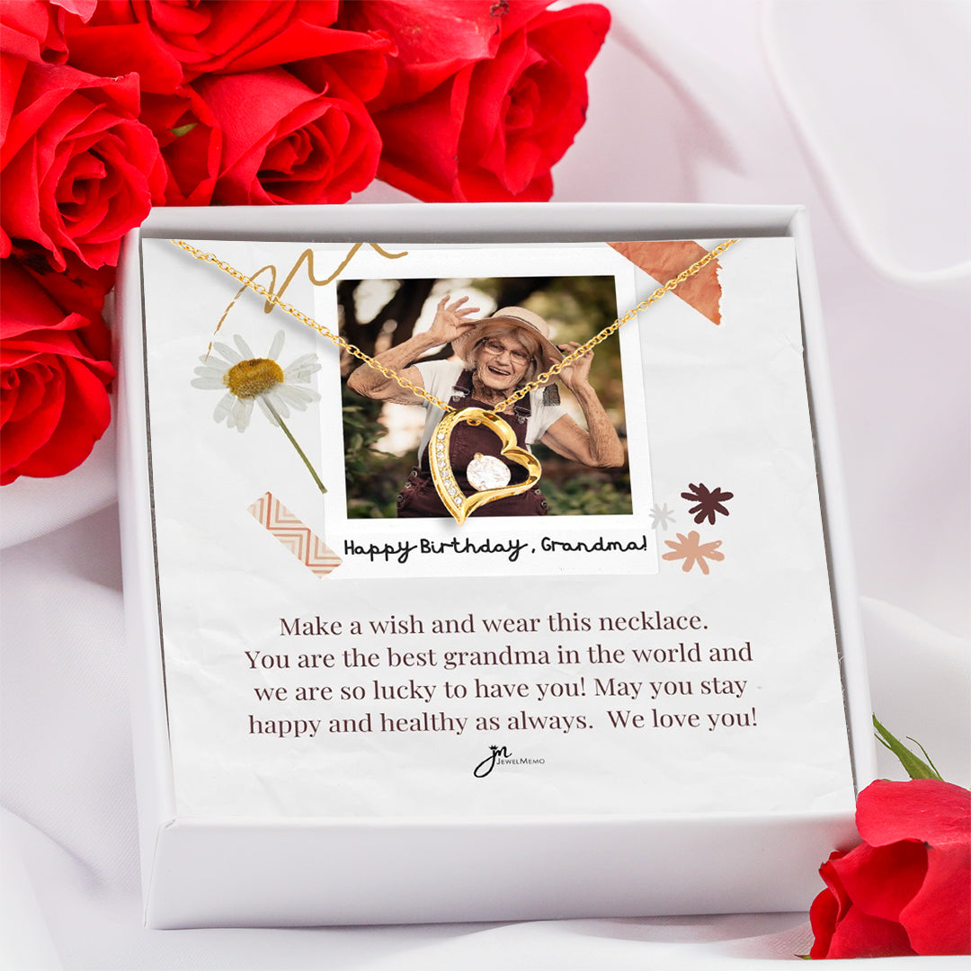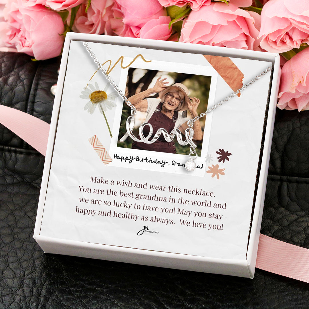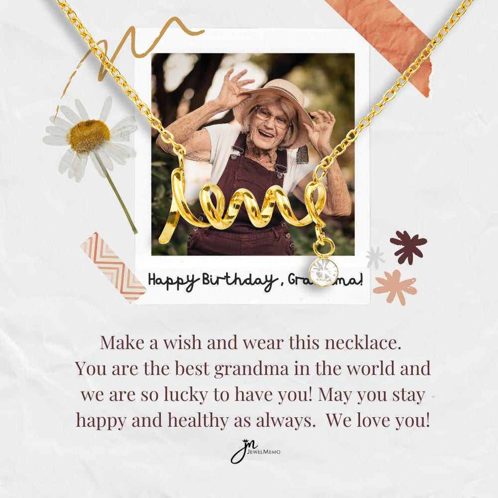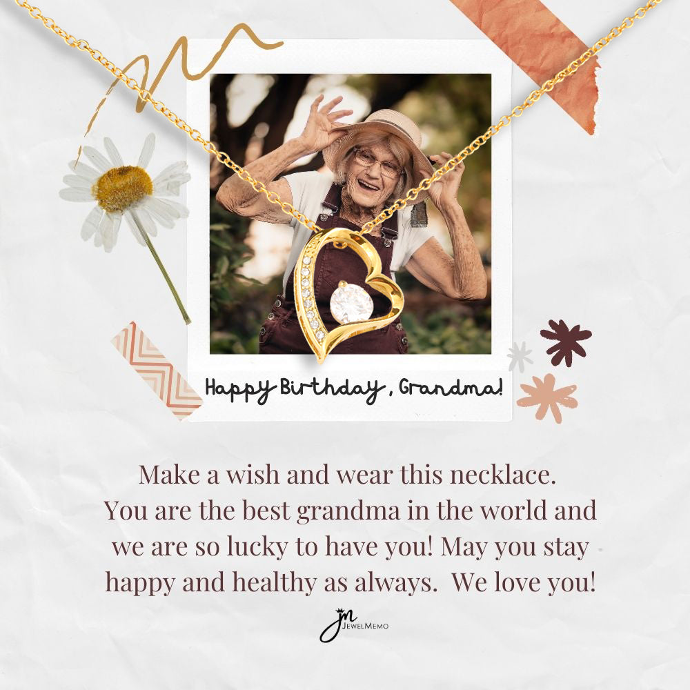 "Make a wish and wear this necklace. You are the best grandma in the world and we are so lucky to have you! May you stay happy and healthy as always. I love you!"