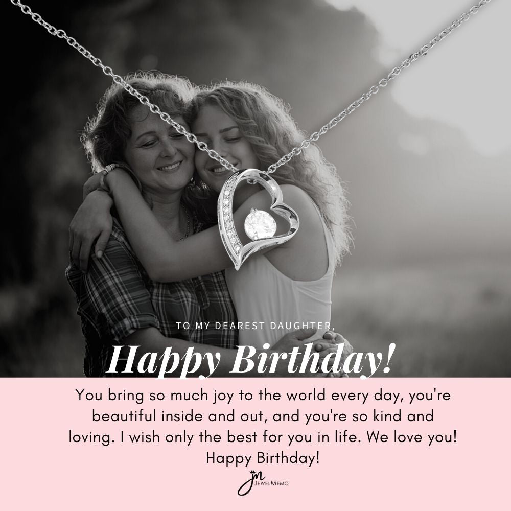 You bring so much joy to the world every day, you're beautiful inside and out, and you're so kind and loving. I wish only the best for you in life. We love you!