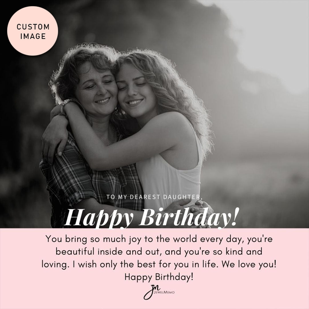 Birthday Necklace Custom Image B/W - Dearest Daughter