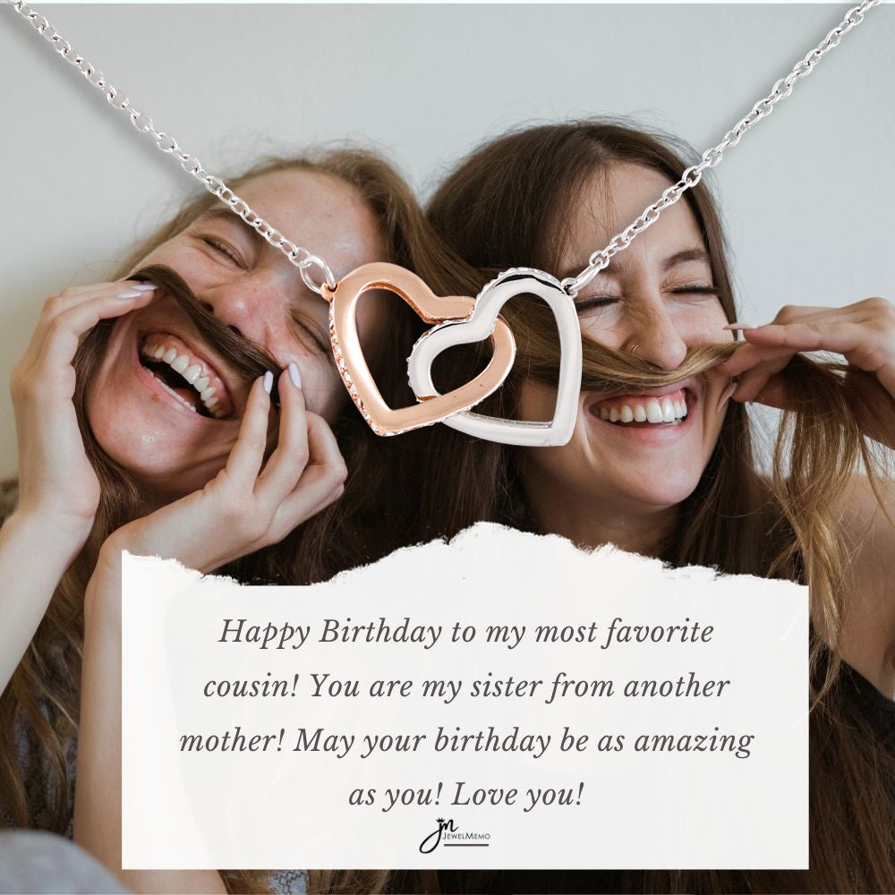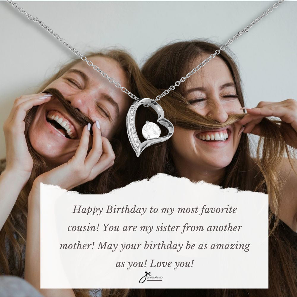 "Happy Birthday to my most favorite cousin! You are my sister from another mother! May your birthday be as amazing as you! Love you!"