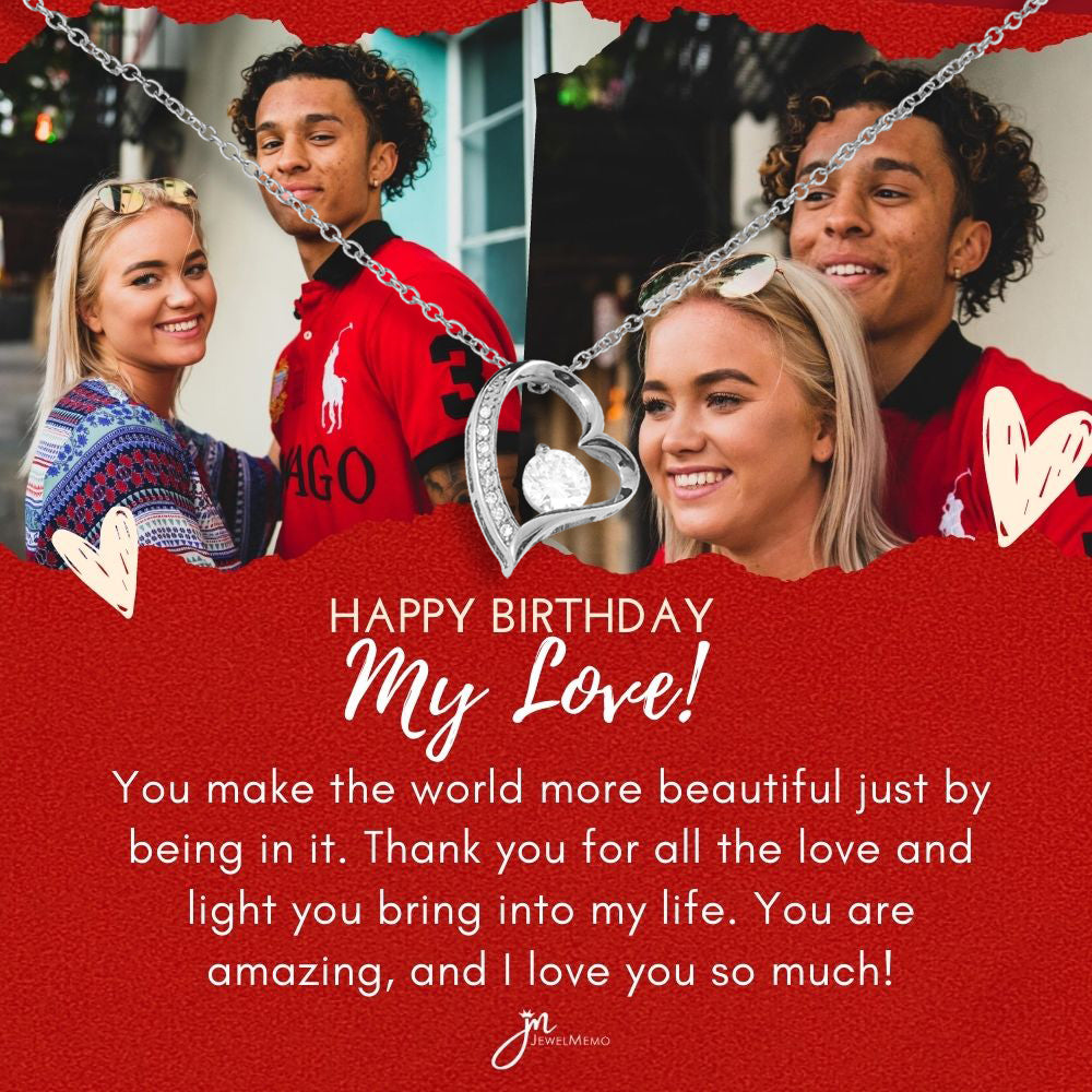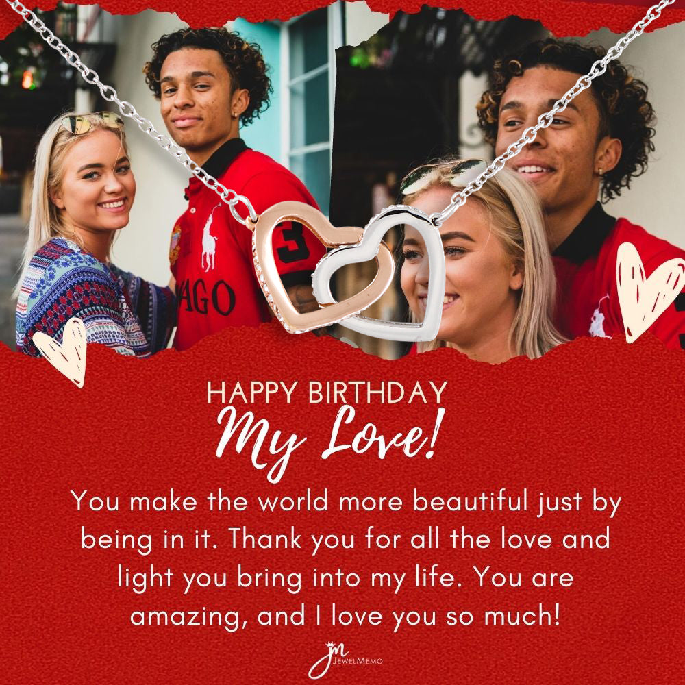 You make the world beautiful just by being in it. Thank you for all the love and light you bring into my life. You are amazing and I love you so much!"