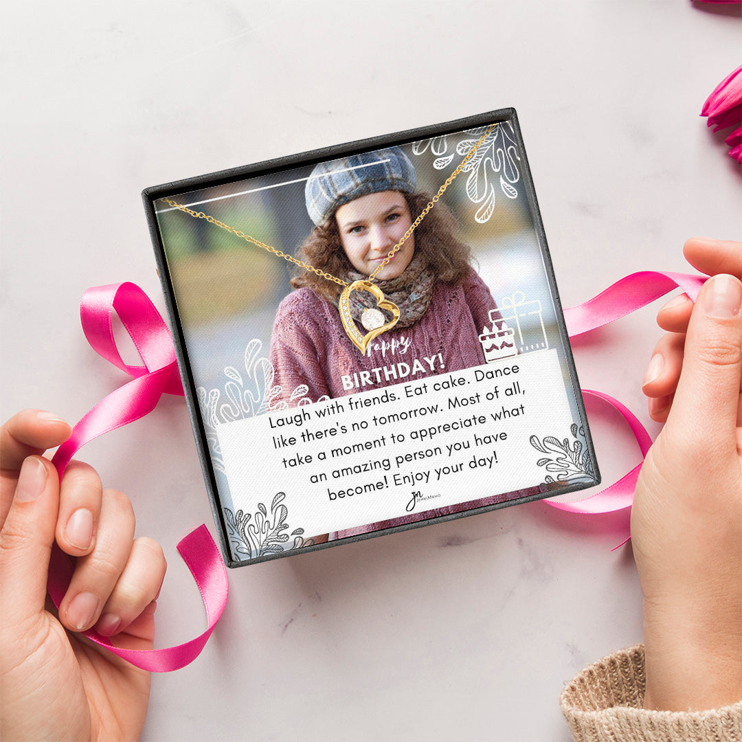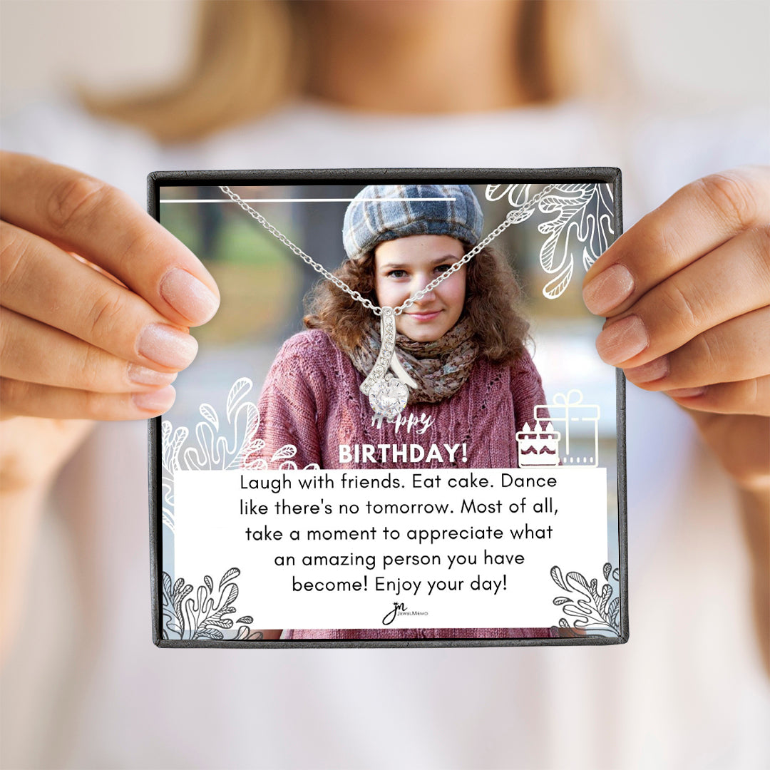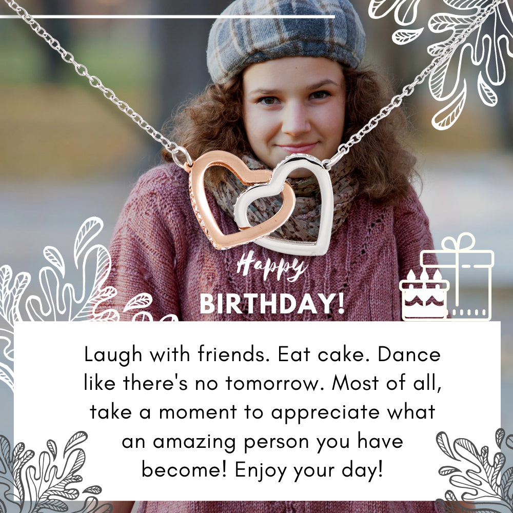 "Laugh with friends. Eat Cake. Dance like there's no tomorrow. Most of all, take a moment to appreciate what an amazing person you have become! Enjoy your day!"