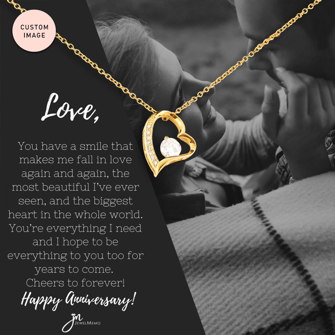 "You have a smile that makes me fall in love again and again, the most beautiful I've ever seen and the biggest heart in the whole world. You're everything I need and I hope to be everything to you too for years to come. Cheers to forever!