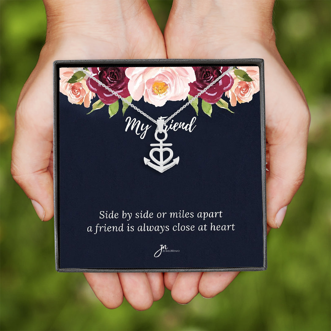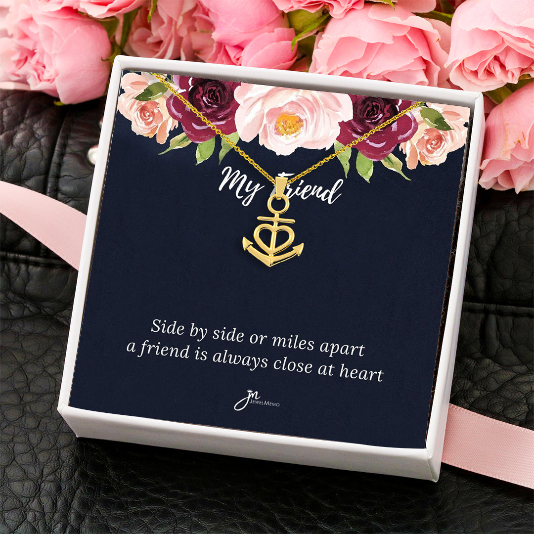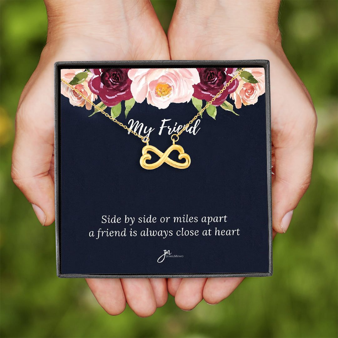"Side by side or miles apart, a friend is always closer at heart"