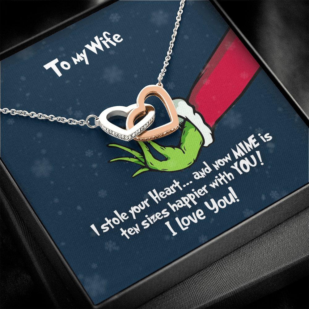 Grinch Christmas Necklace - To My Wife Interlocking Hearts