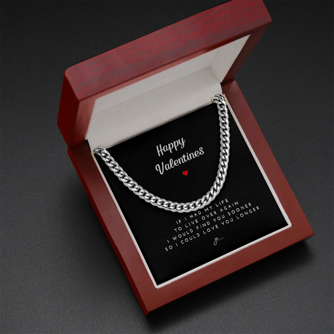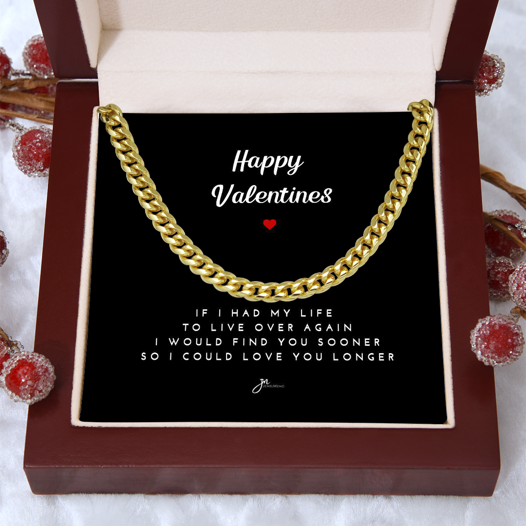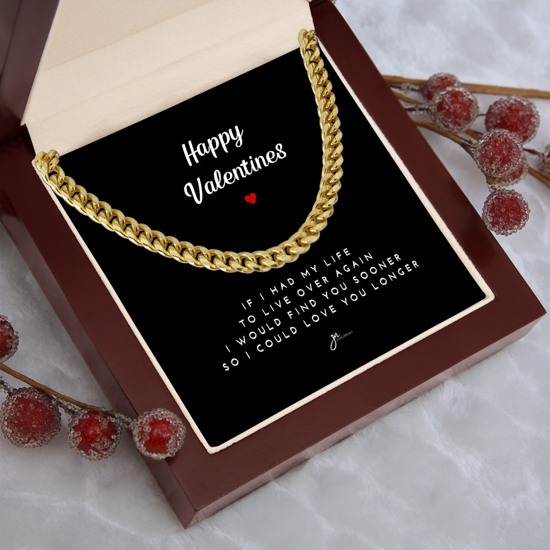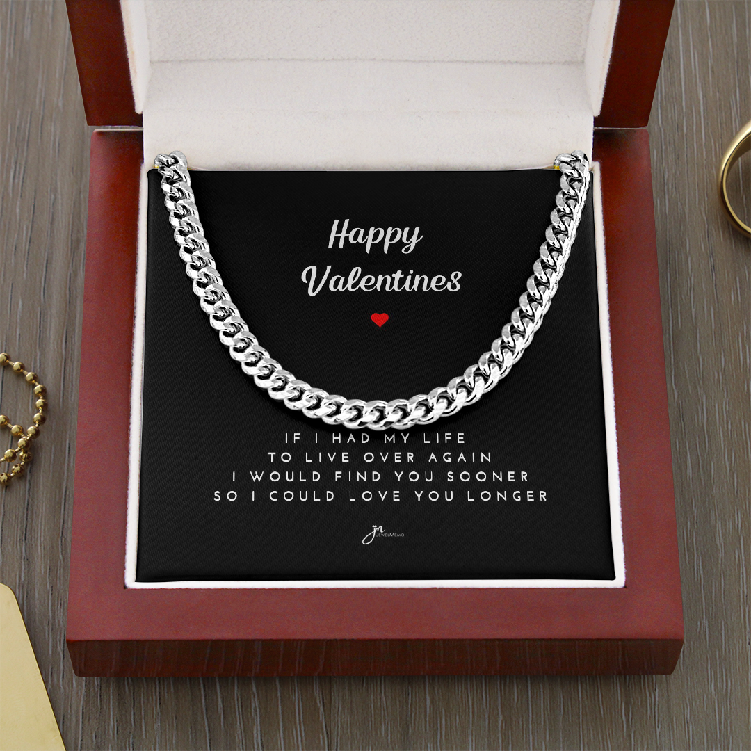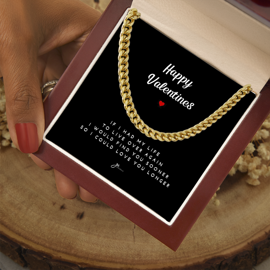 Happy Valentines Cuban Link Chain Necklace - Black Card