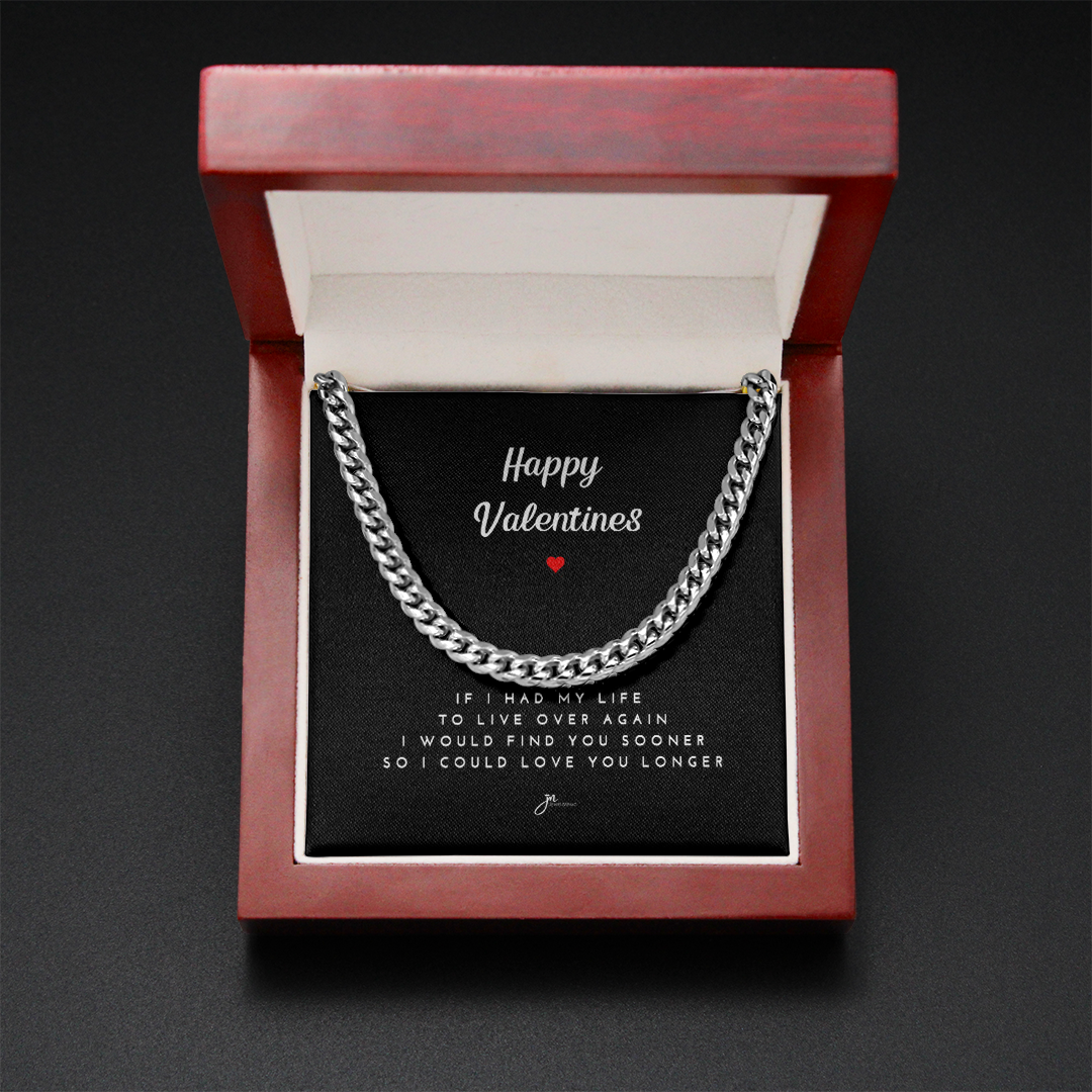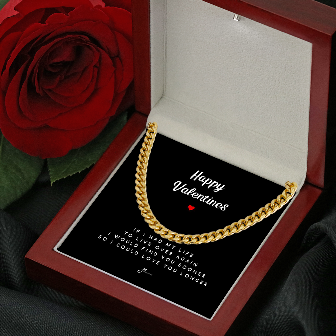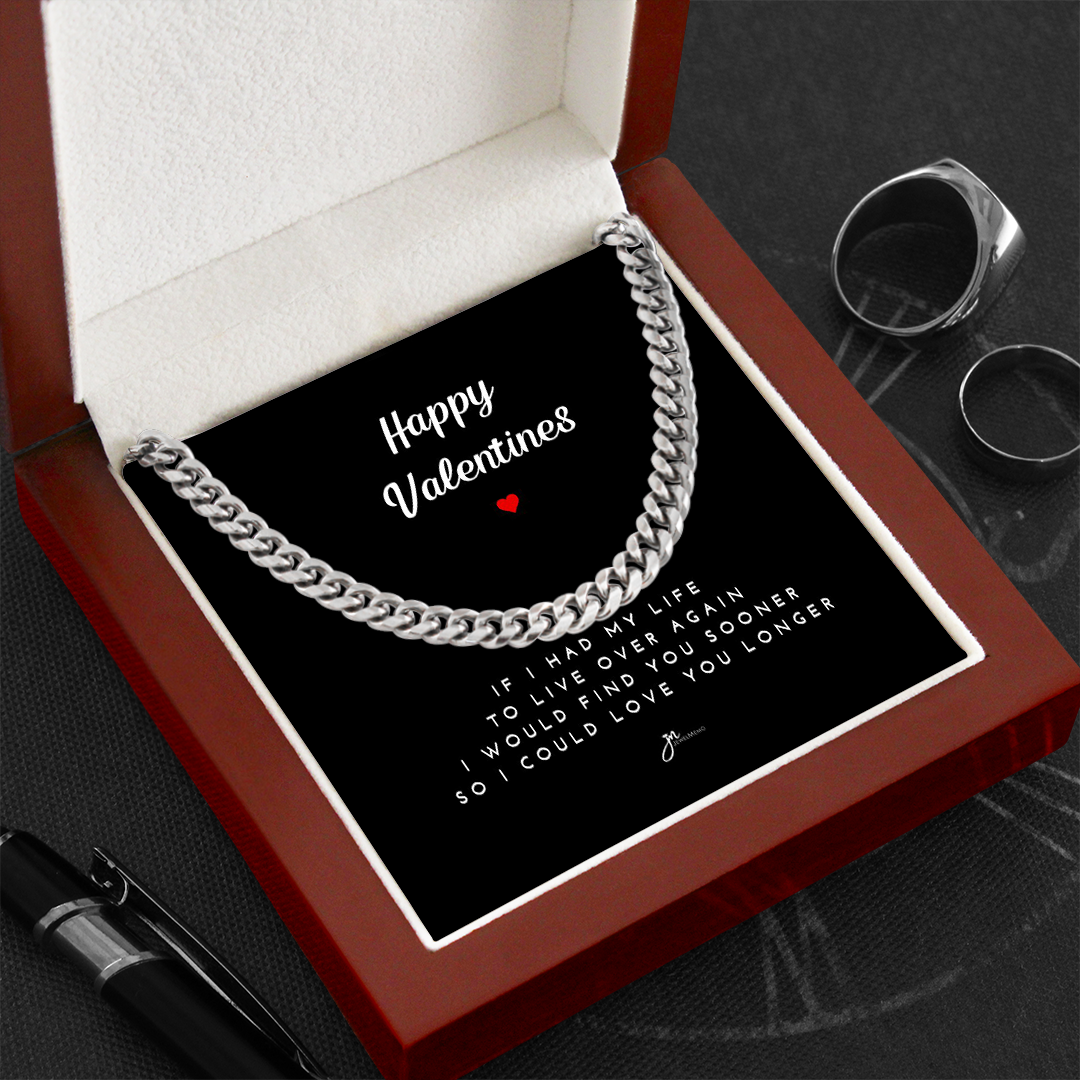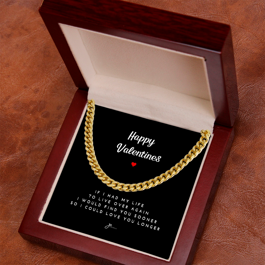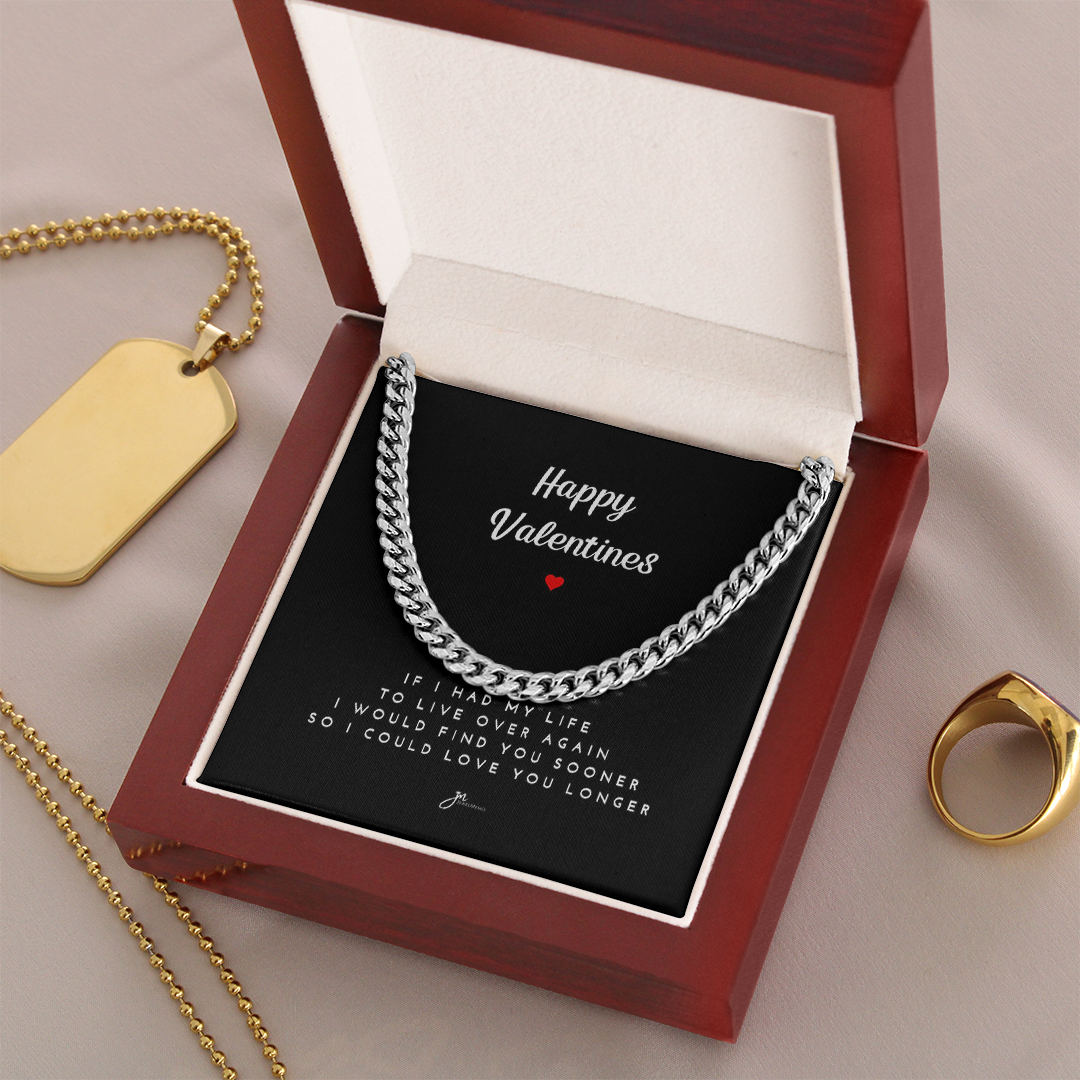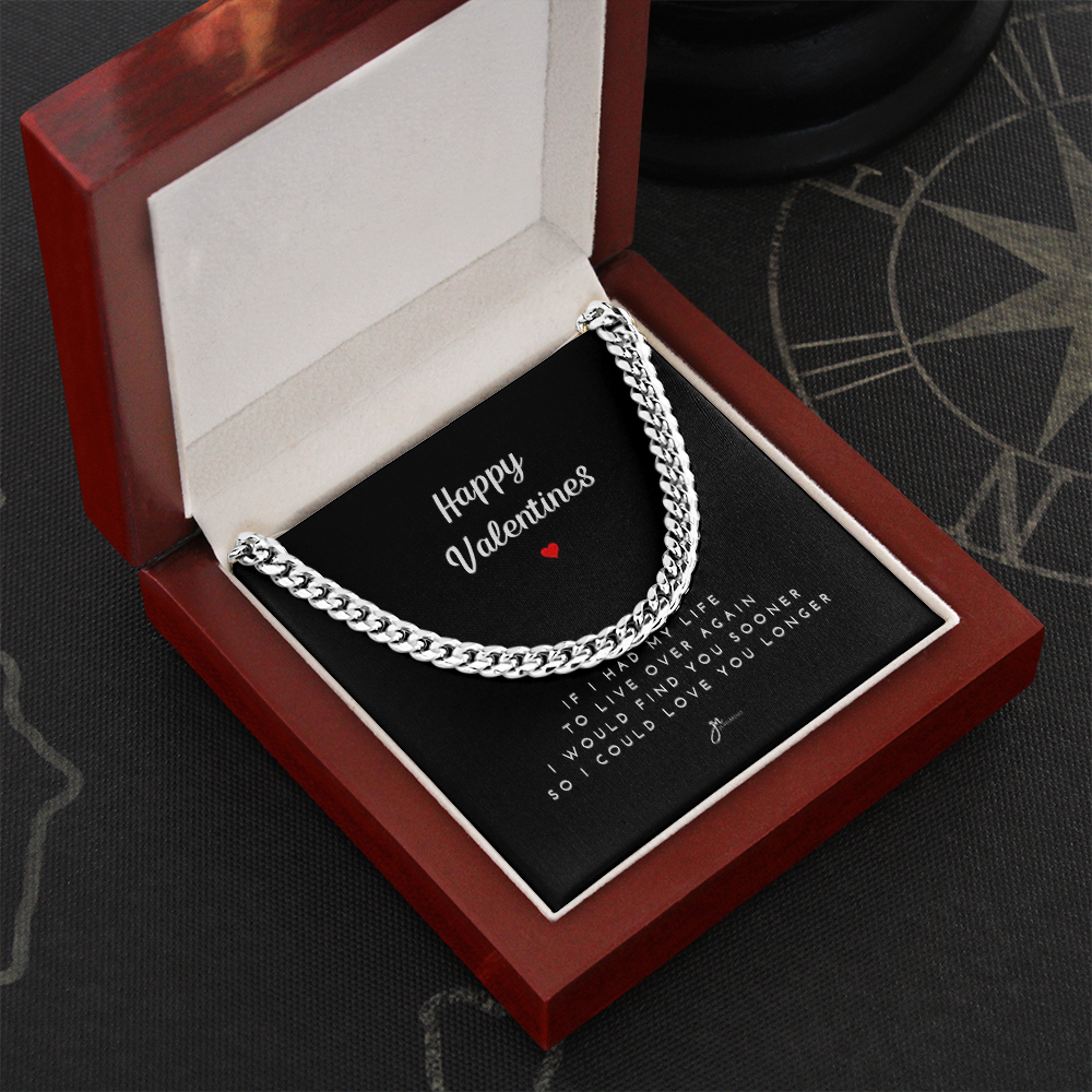 Happy Valentines Cuban Link Chain Necklace - Black Card