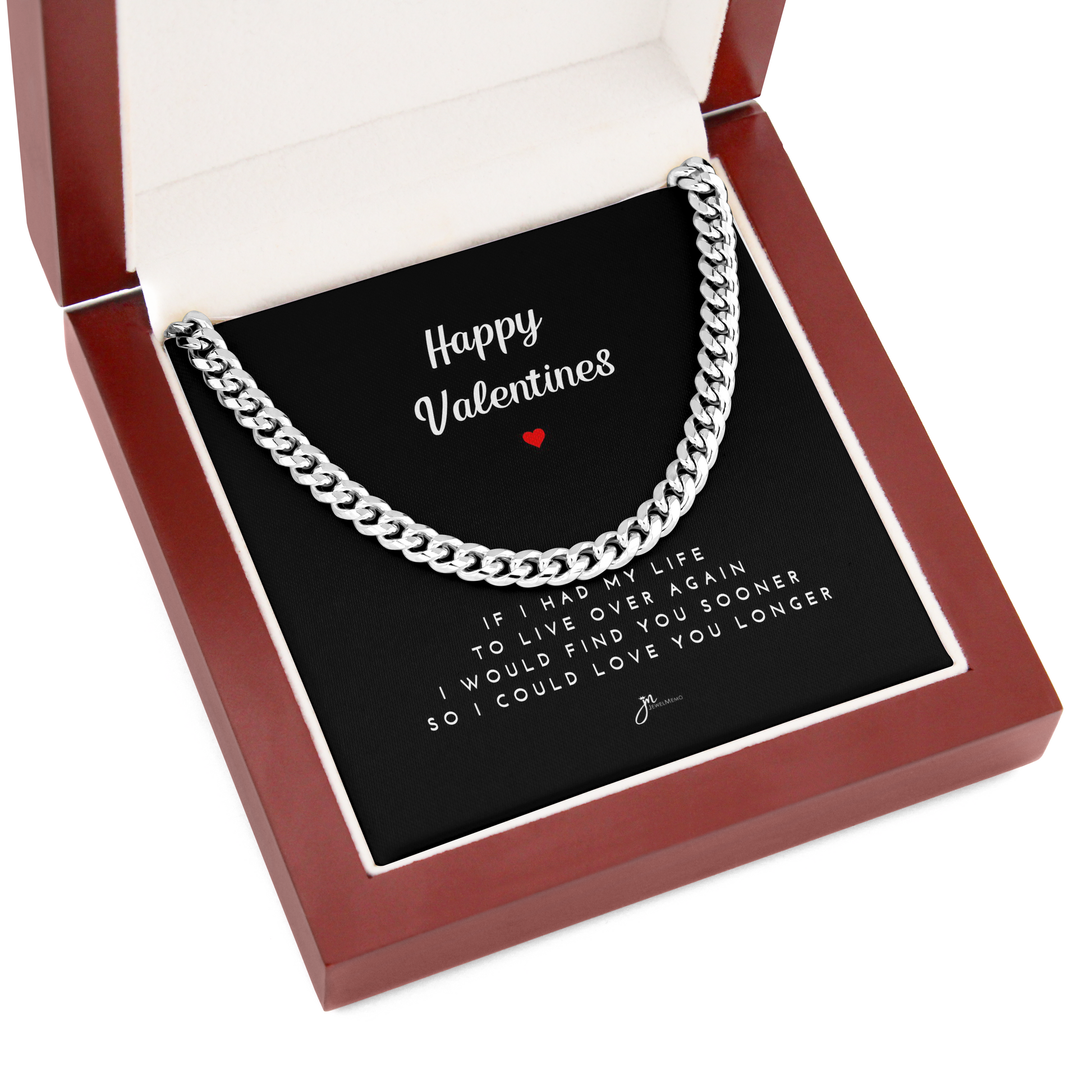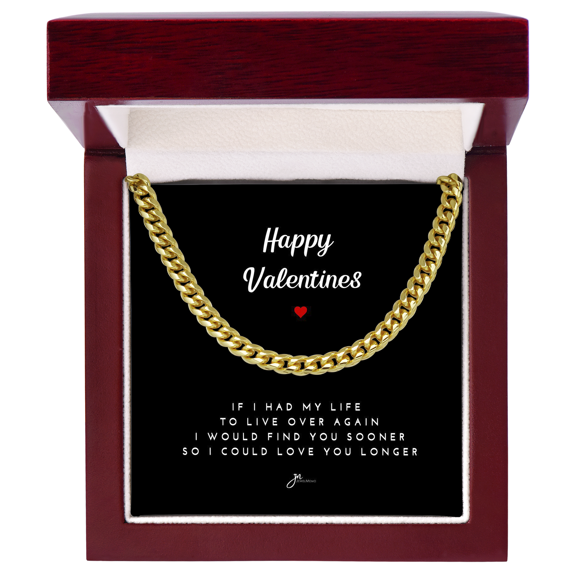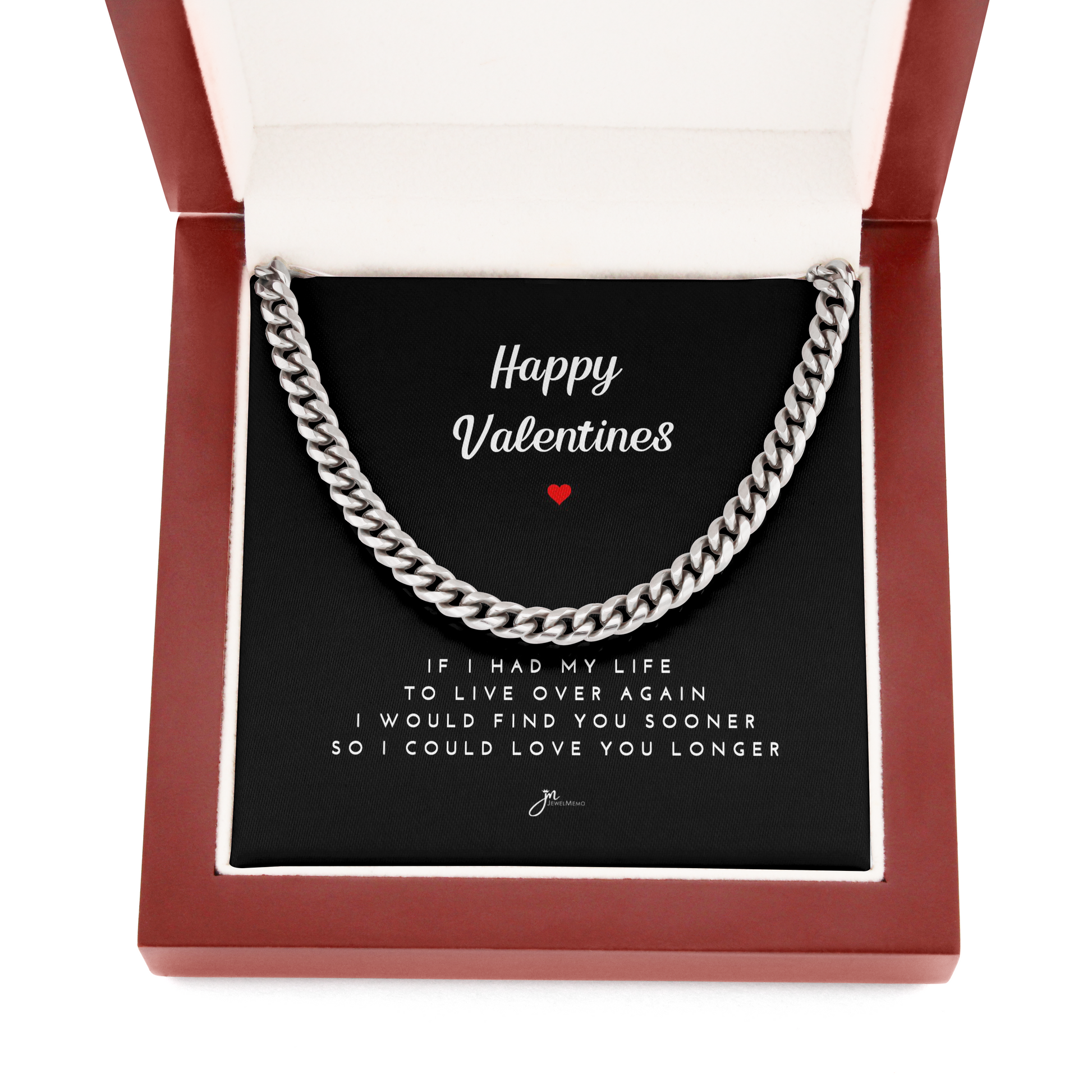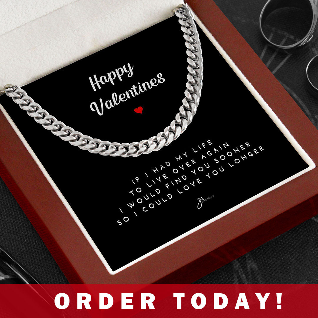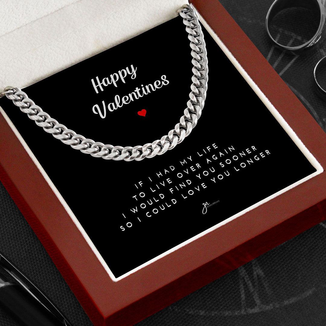 Happy Valentines Cuban Link Chain Necklace - Black Card