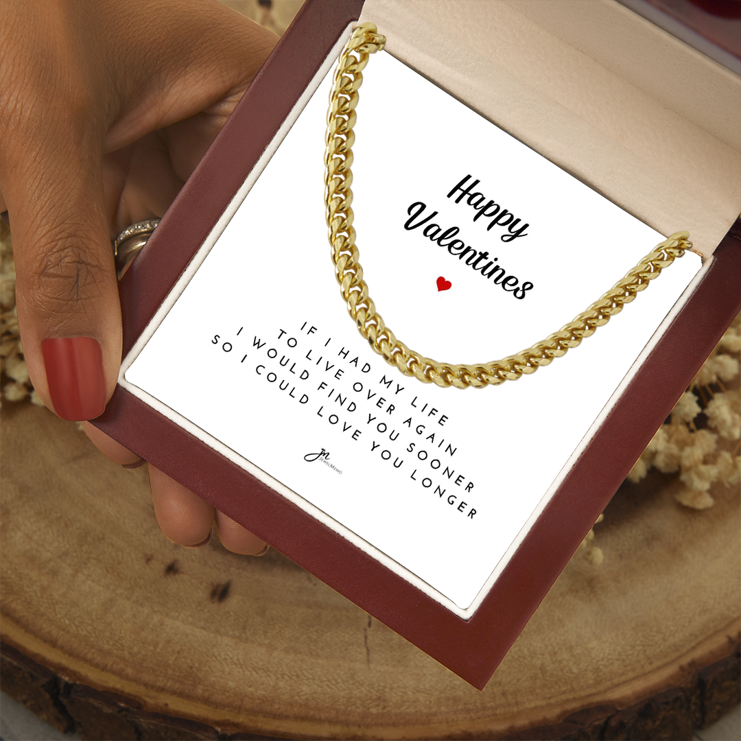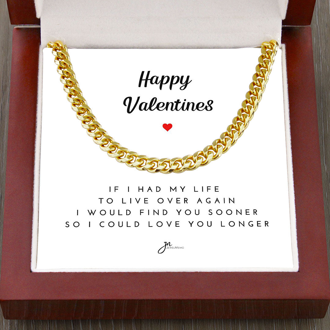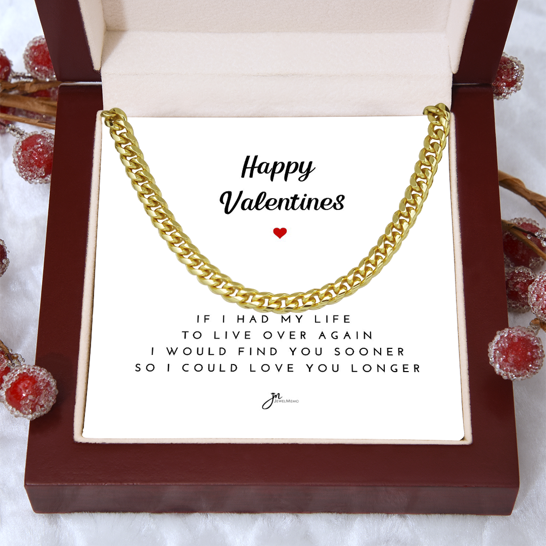 Happy Valentines Cuban Link Chain Necklace - White Card
