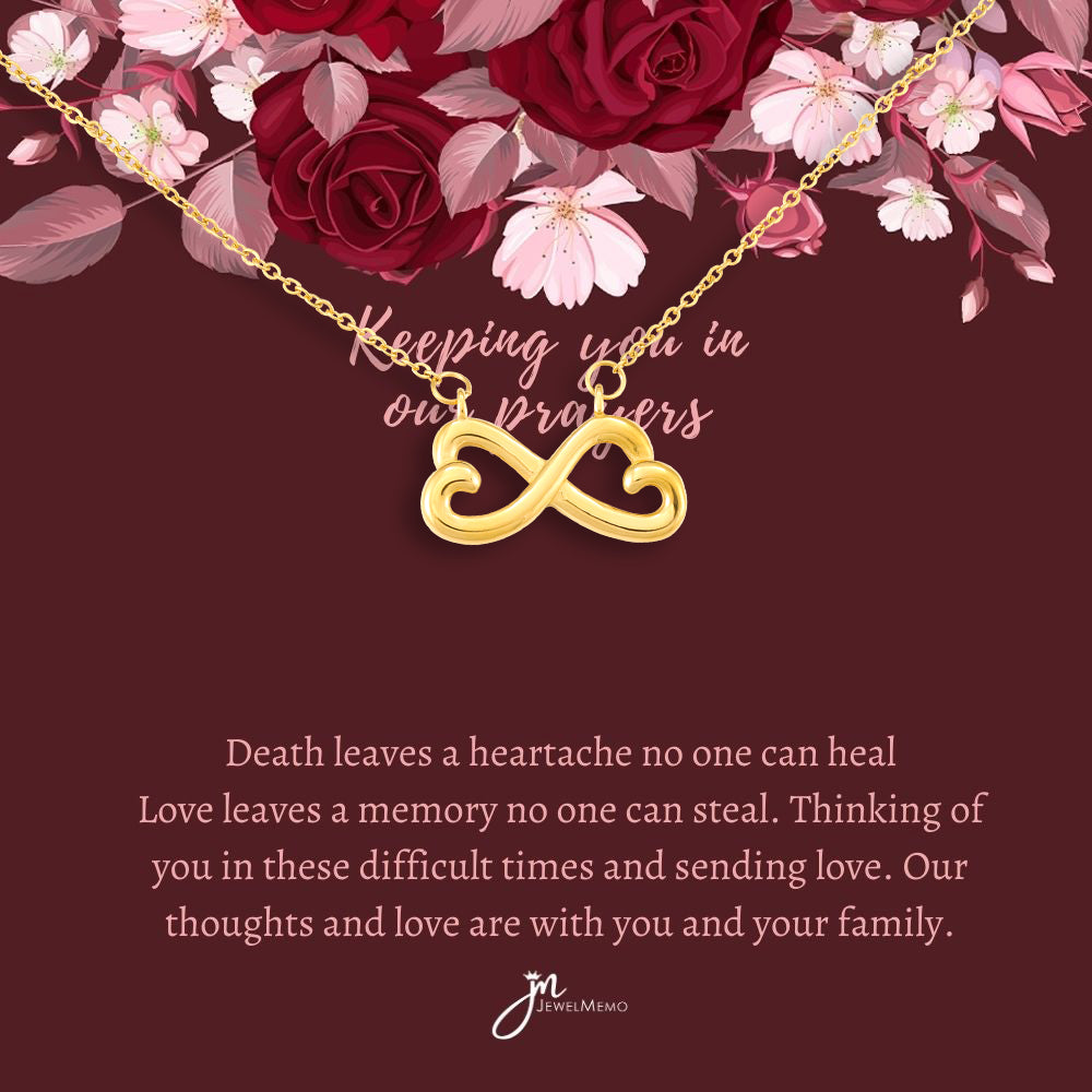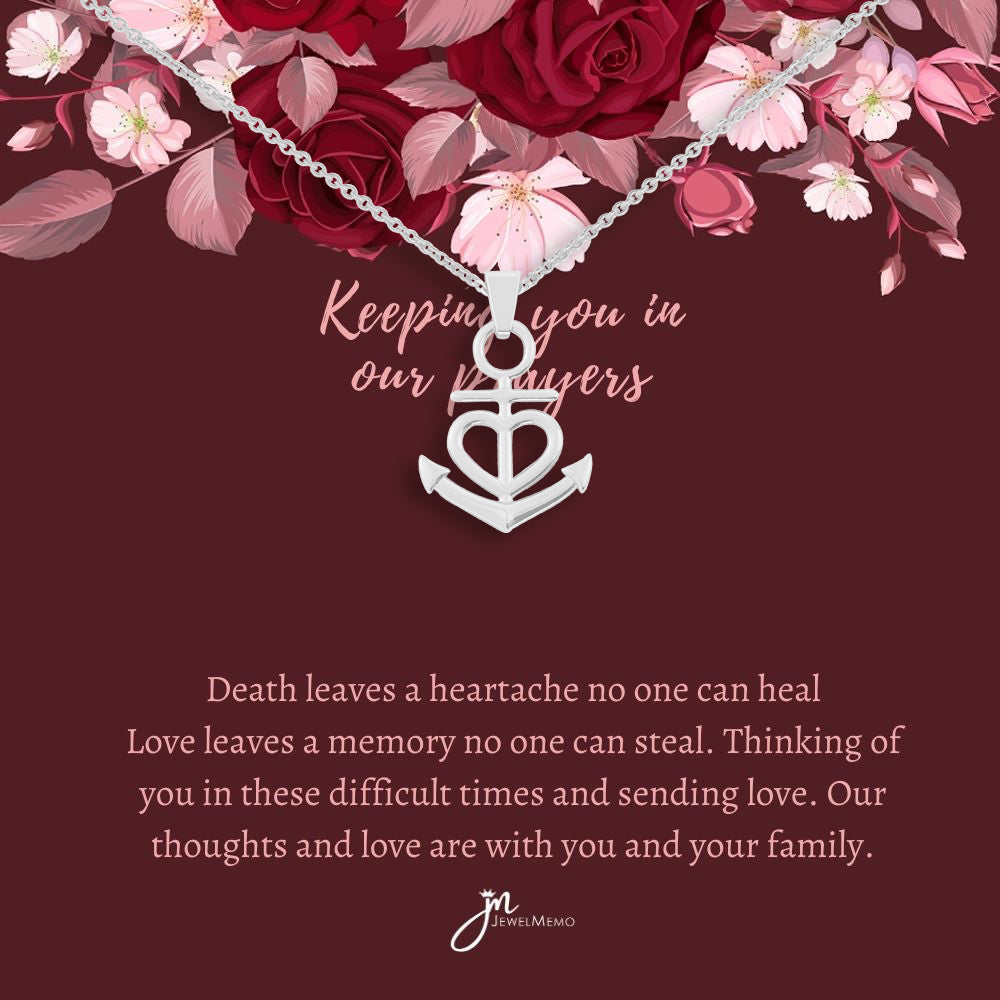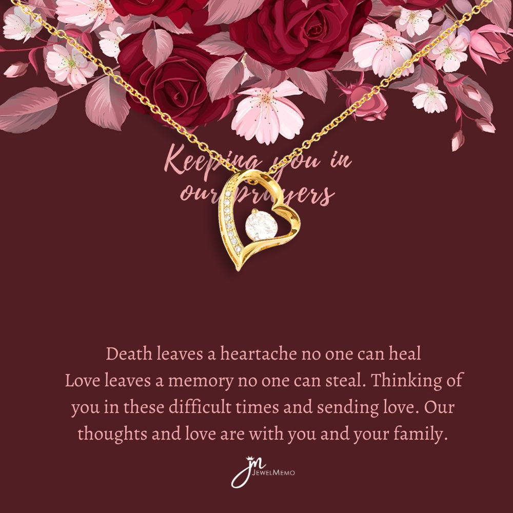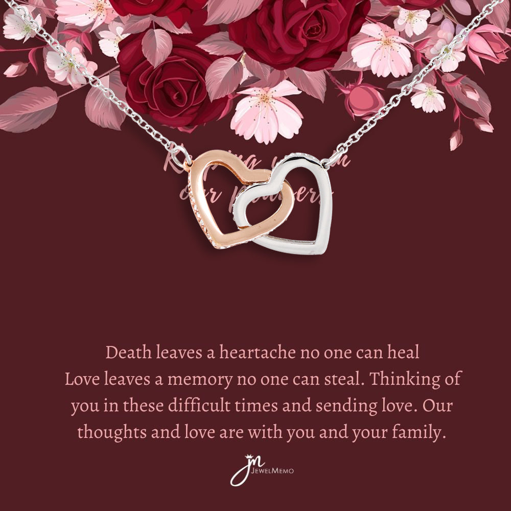 "Death leaves a heartache no one can heal, Love leaves a memory no one can steal. Thinking of you in these difficult times and sending love. Our thoughts and love are with you and your family."