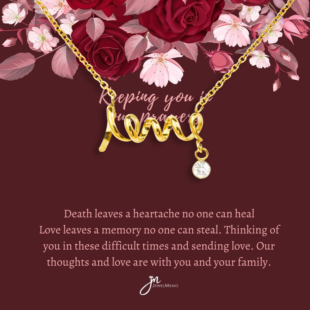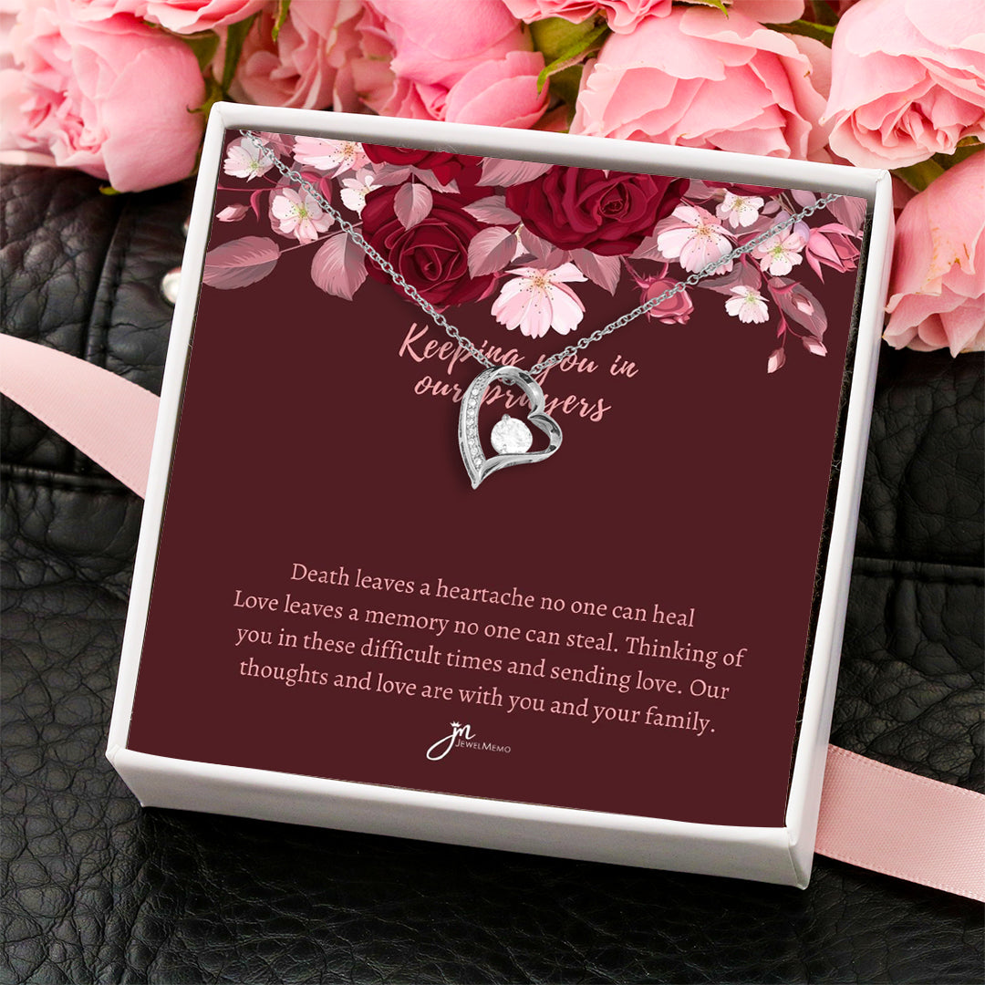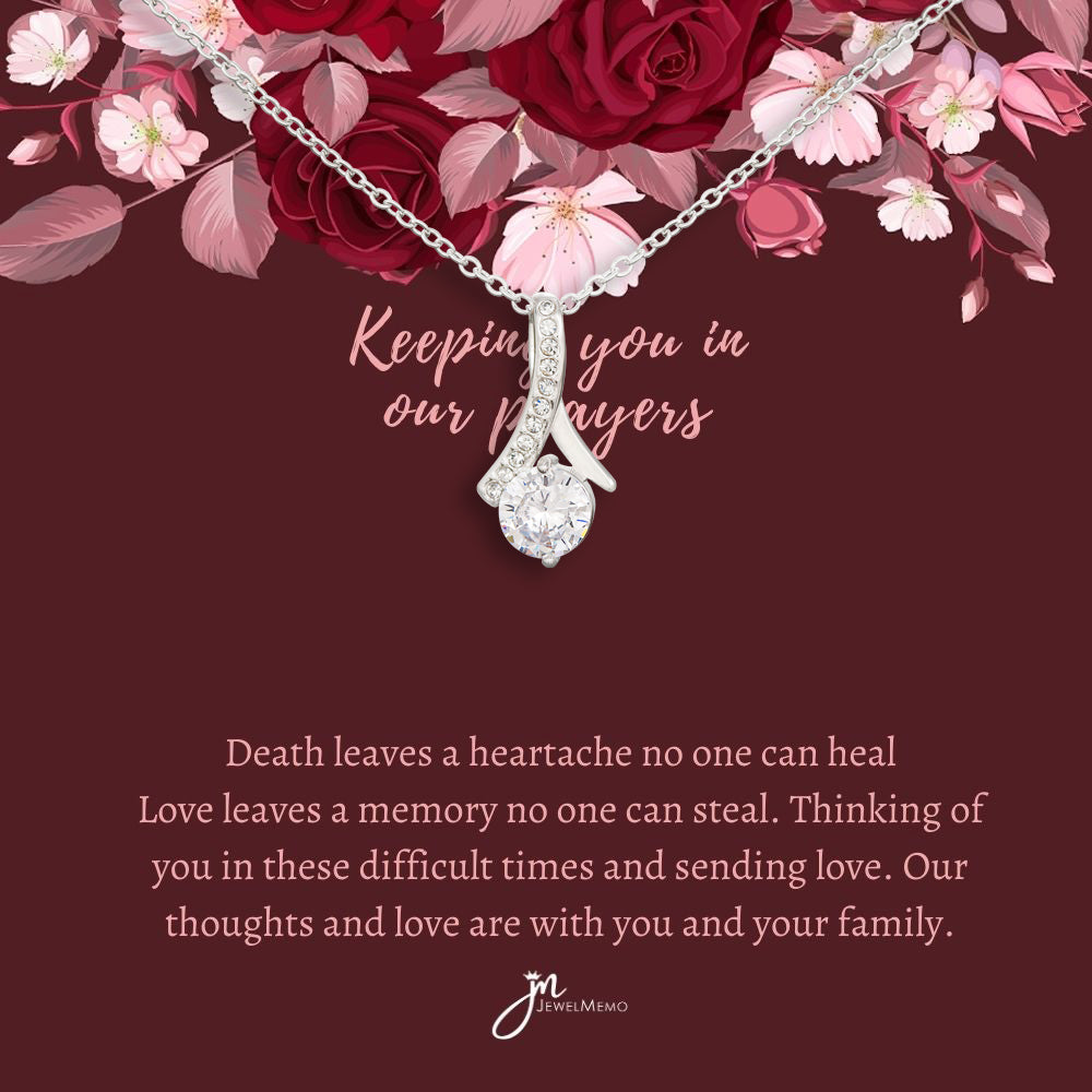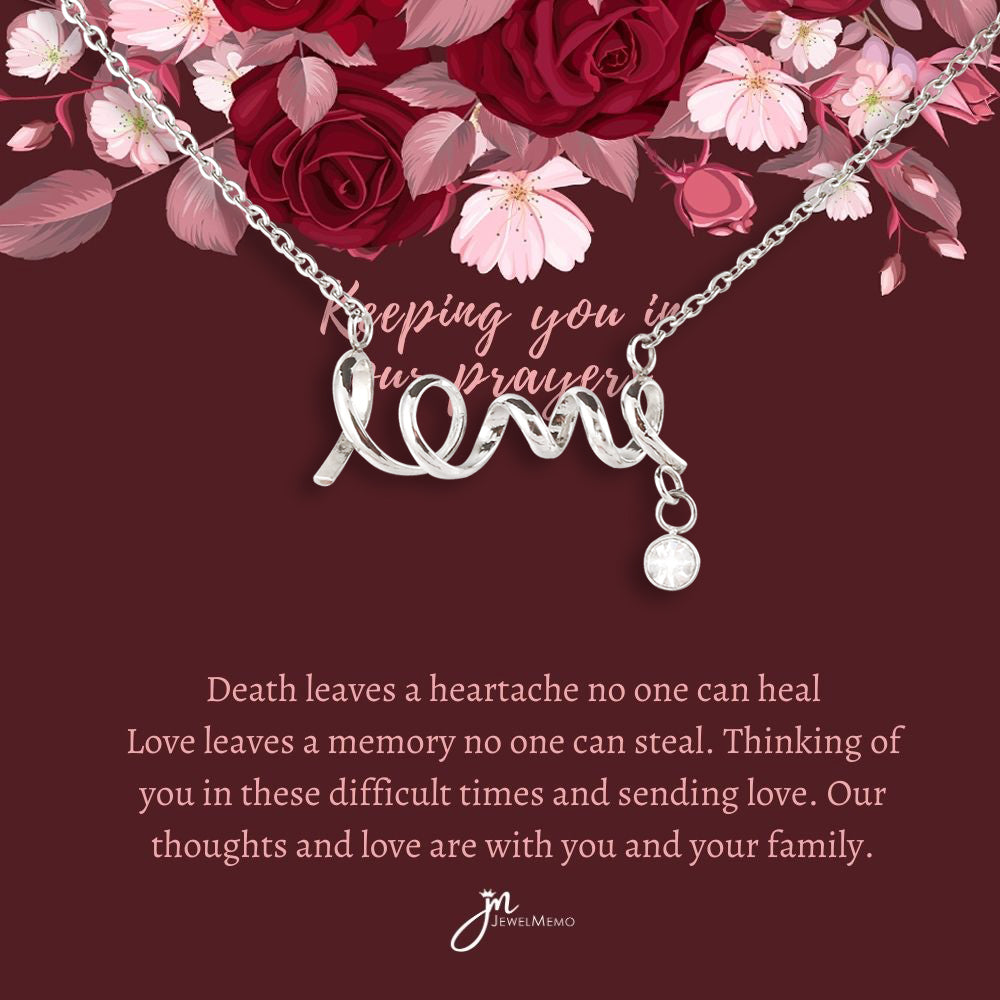 "Death leaves a heartache no one can heal, Love leaves a memory no one can steal. Thinking of you in these difficult times and sending love. Our thoughts and love are with you and your family."