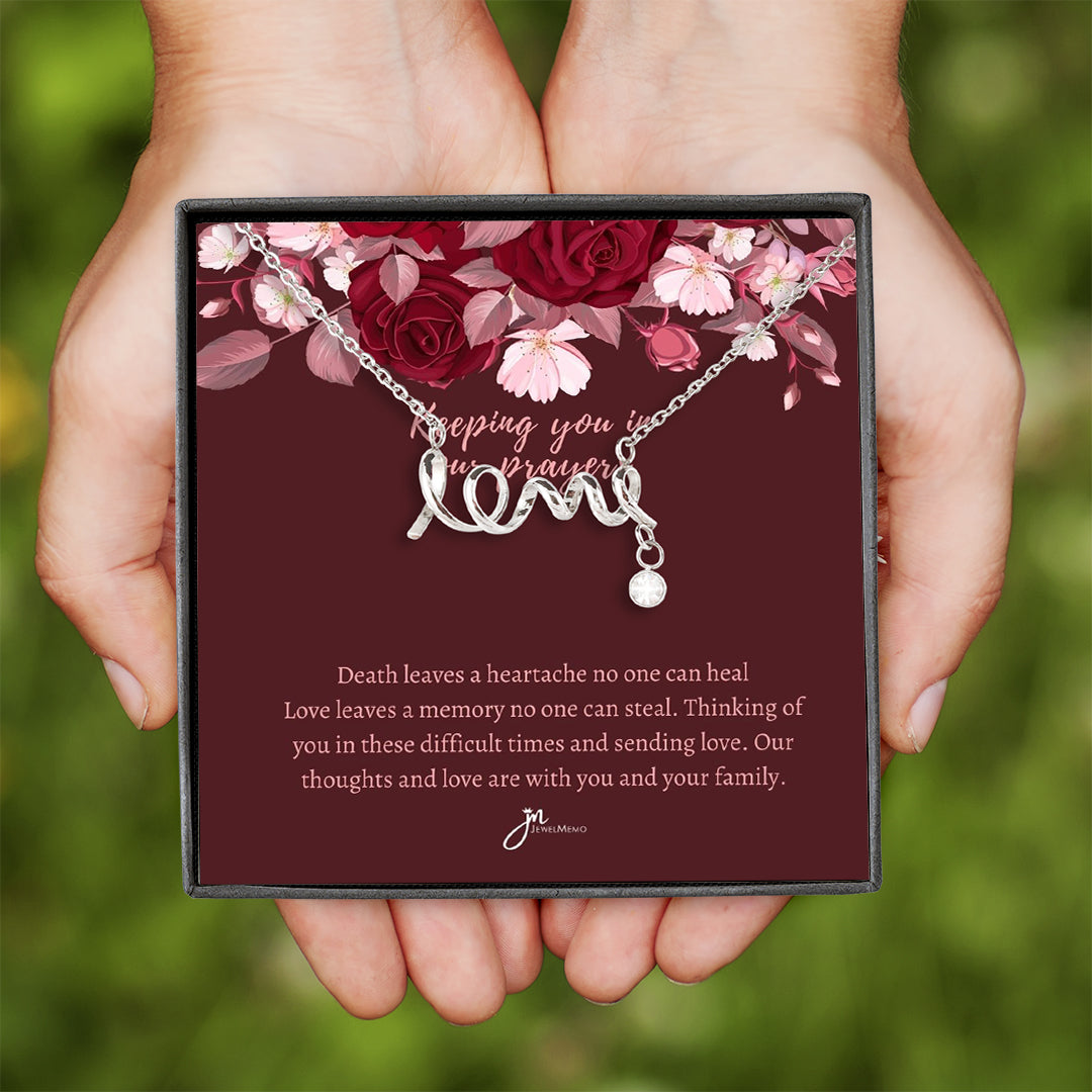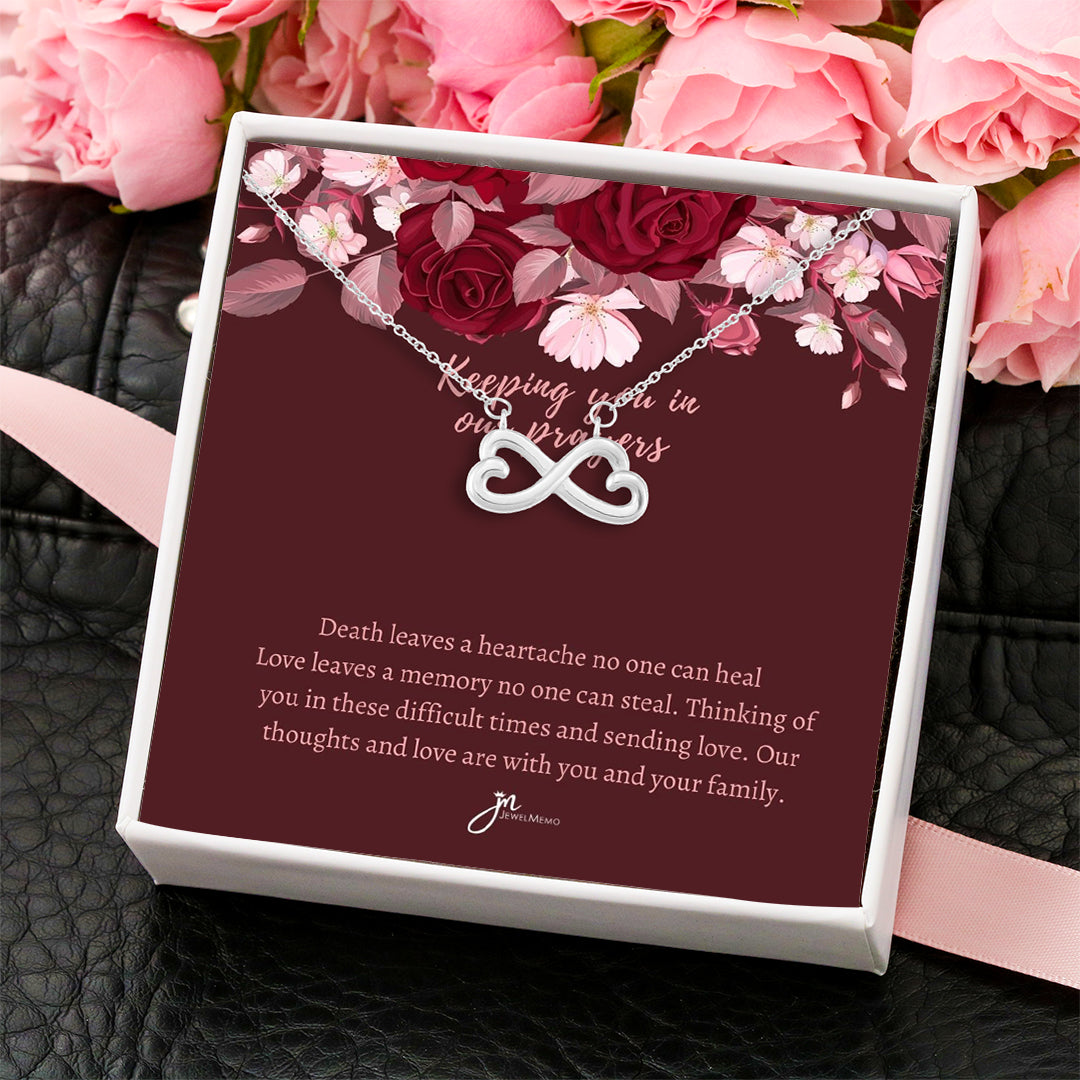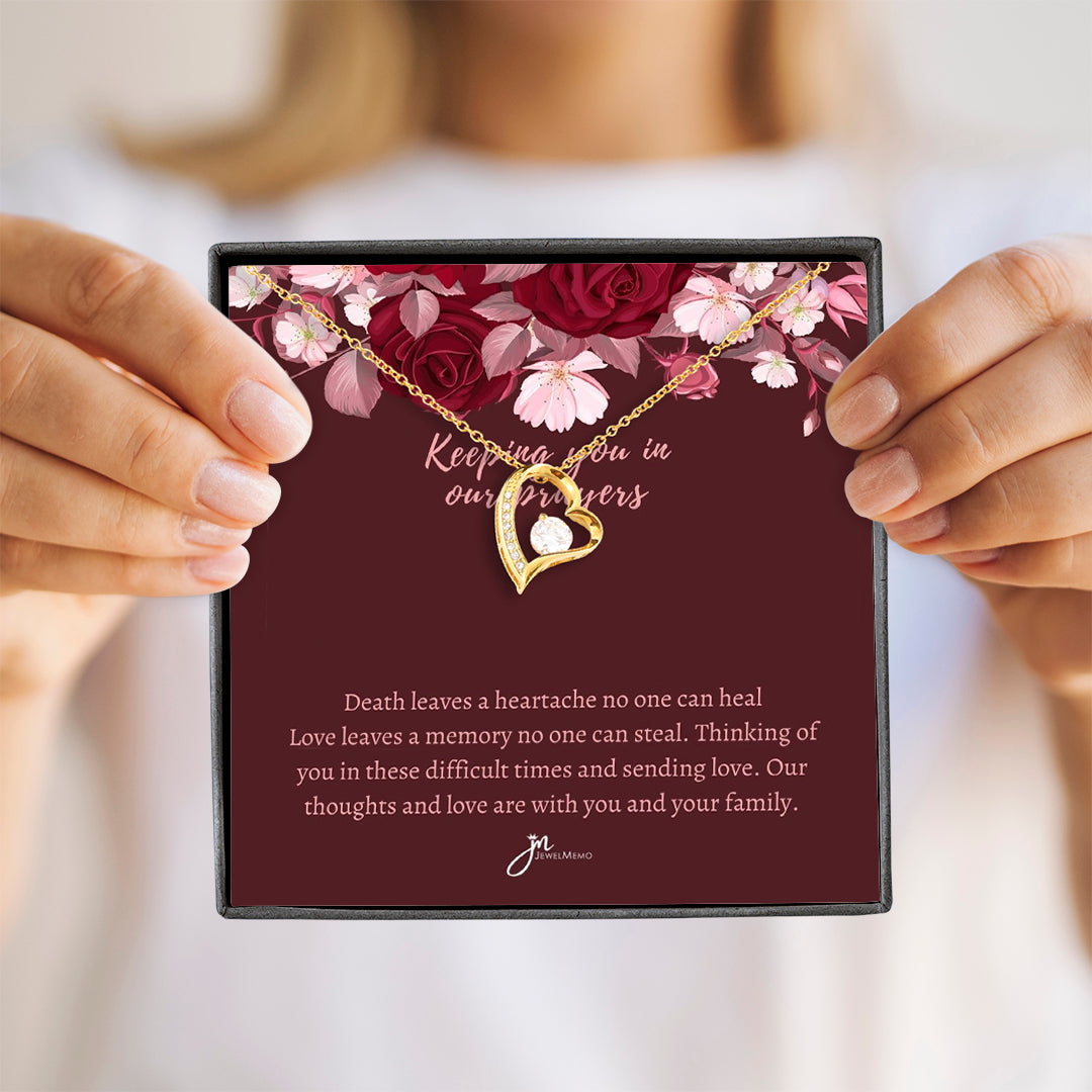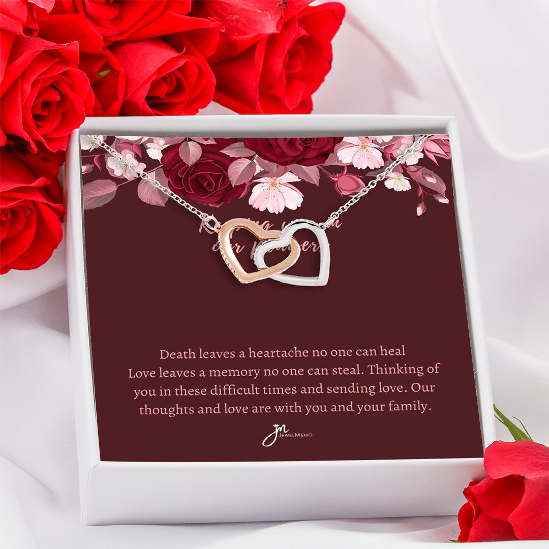 "Death leaves a heartache no one can heal, Love leaves a memory no one can steal. Thinking of you in these difficult times and sending love. Our thoughts and love are with you and your family."