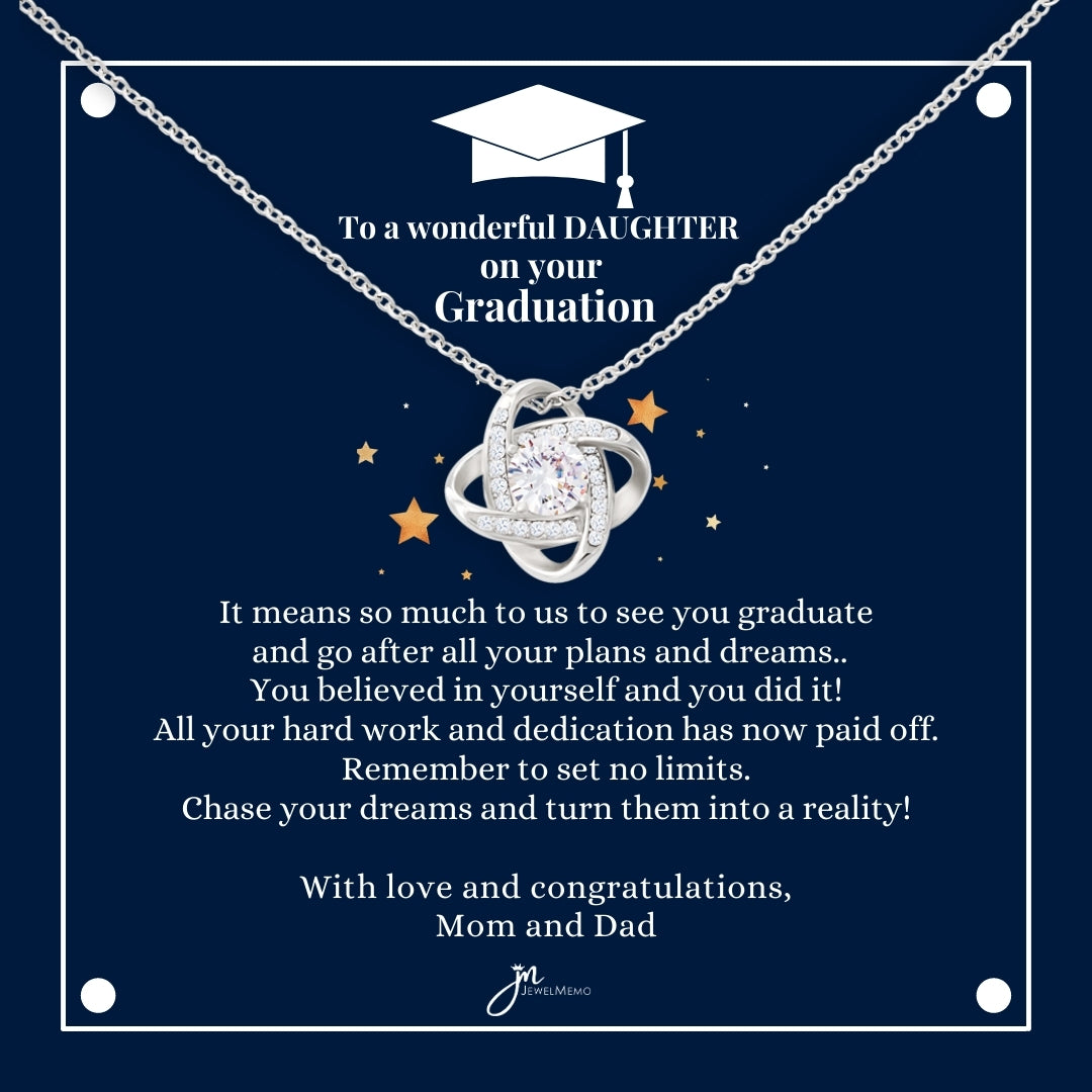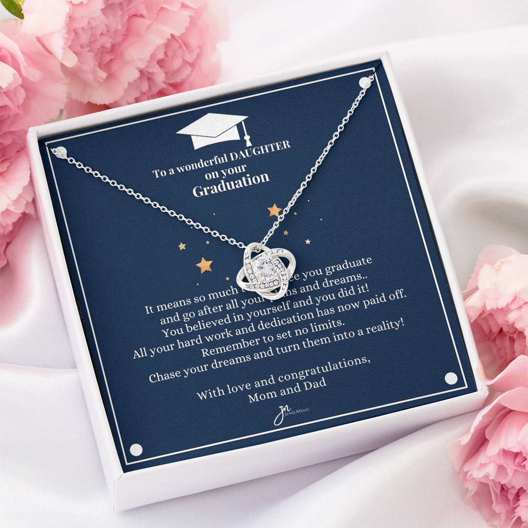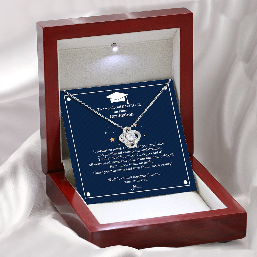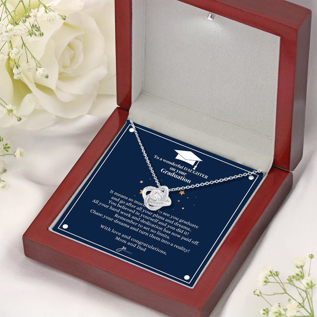 To A Wonderful Daughter Graduation Necklace - Love Knot Blue Card