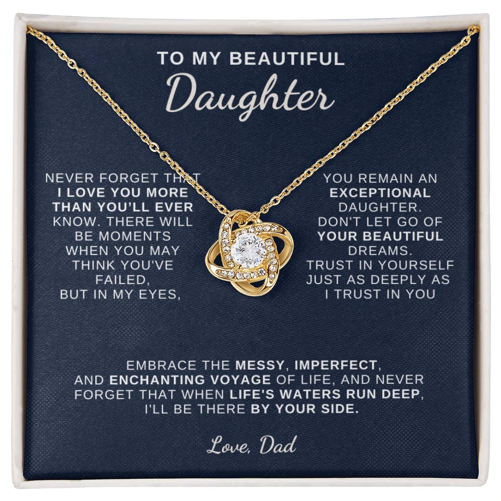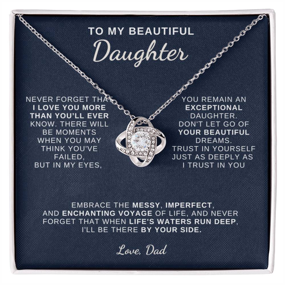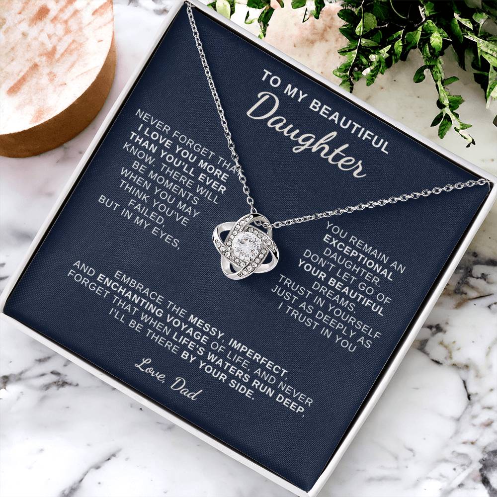 To My Beautiful Daughter, Love Knot Necklace, Gift From Dad, Dad to Daughter Gift, Christmas Gift Idea