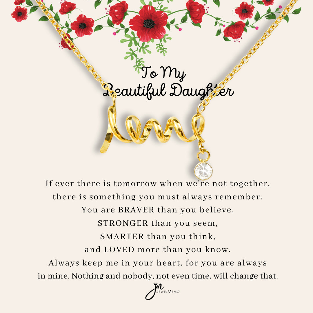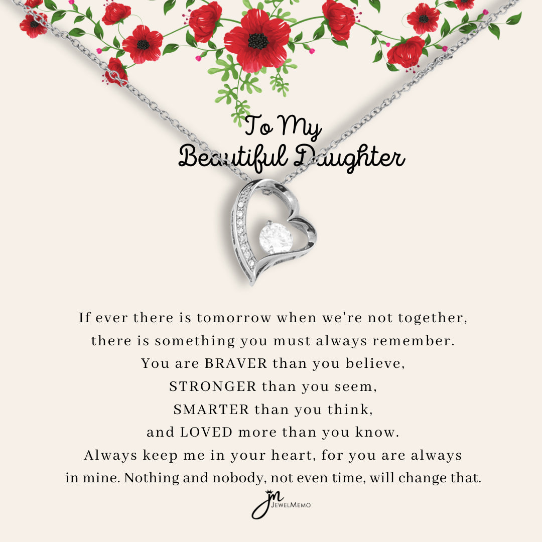 If ever there is tomorrow when we're not together, there is something you must always remember, You are BRAVE than you believe, STRONGER than you seem, SMARTER than you think and LOVED more than you know. Always keep me in your heart, for you are always in mine.