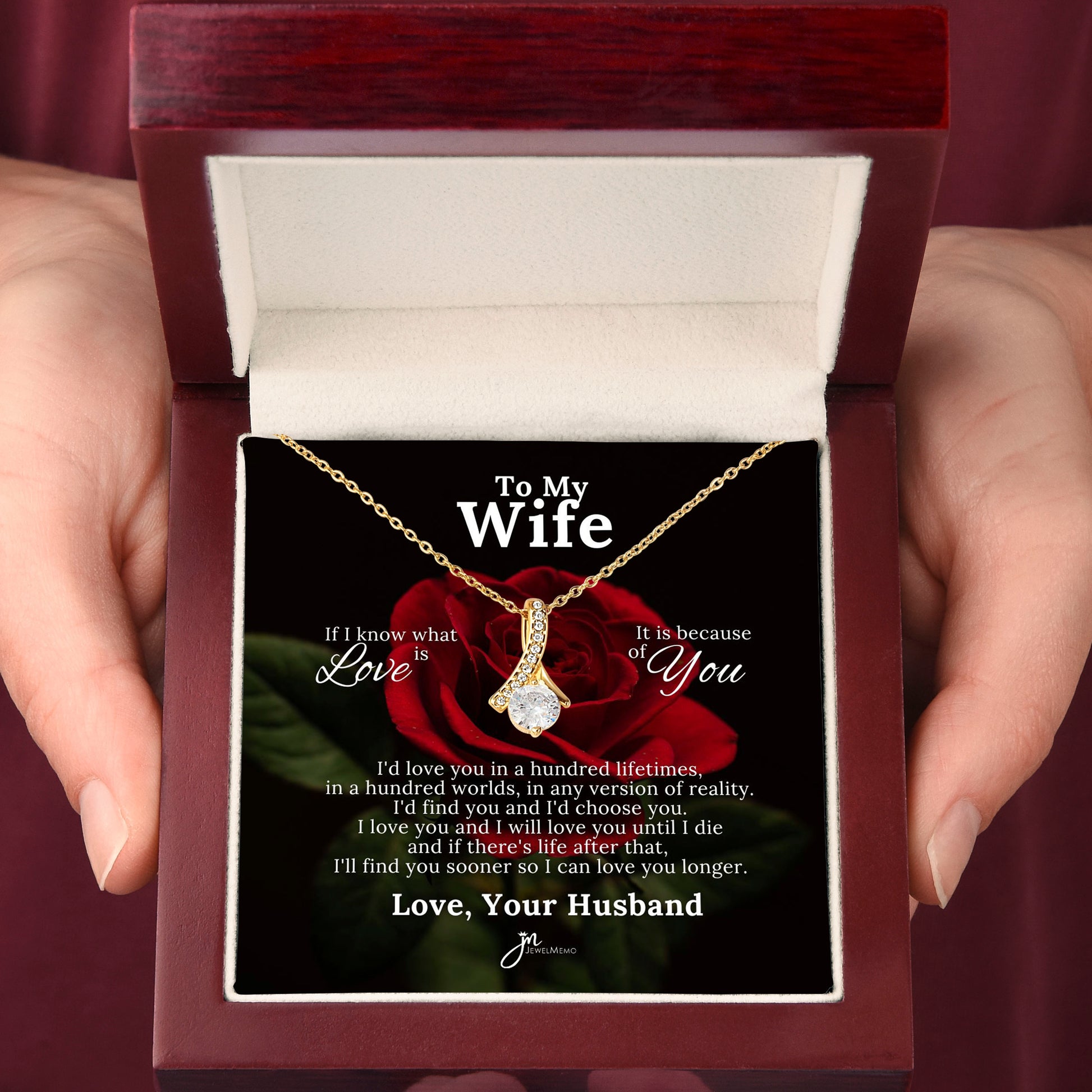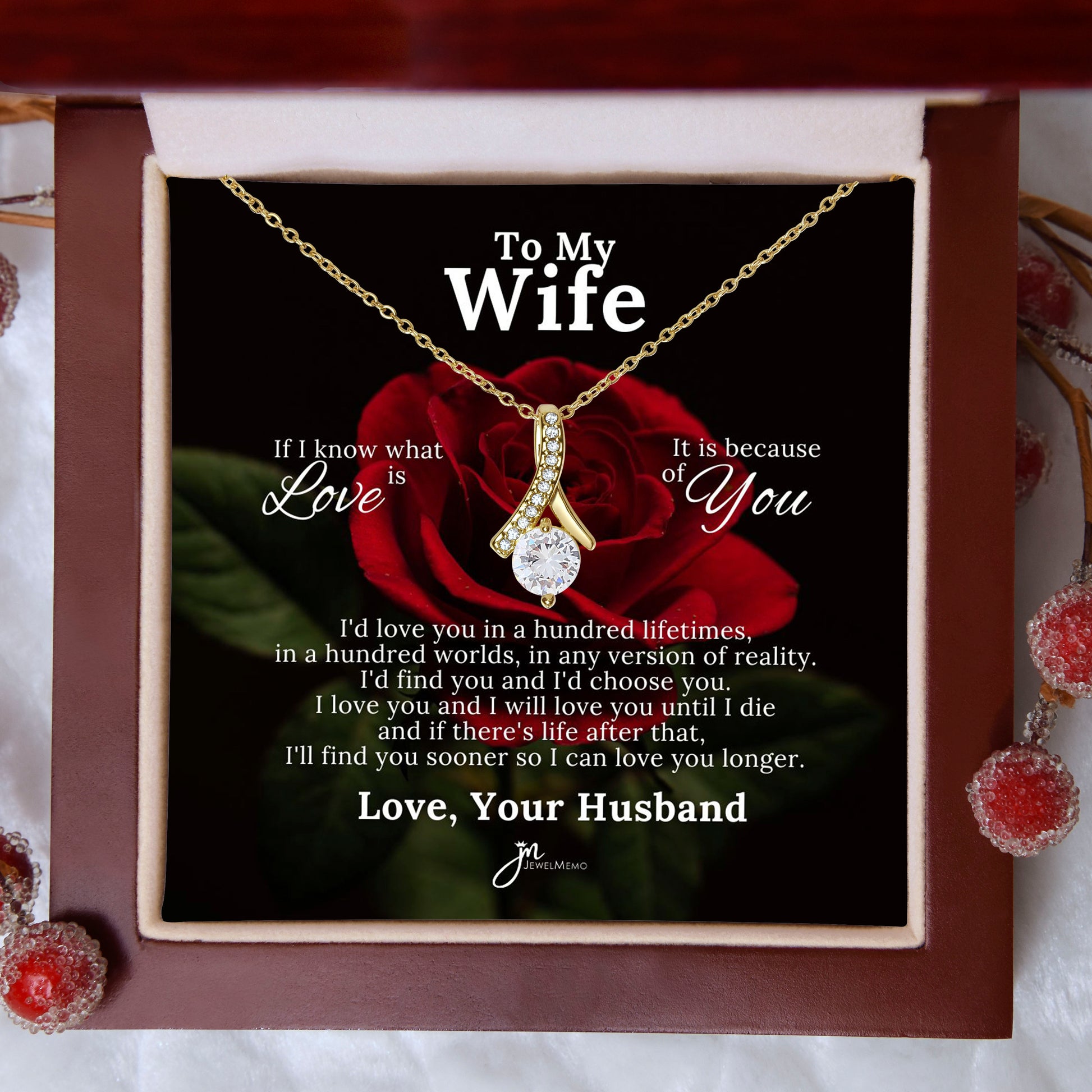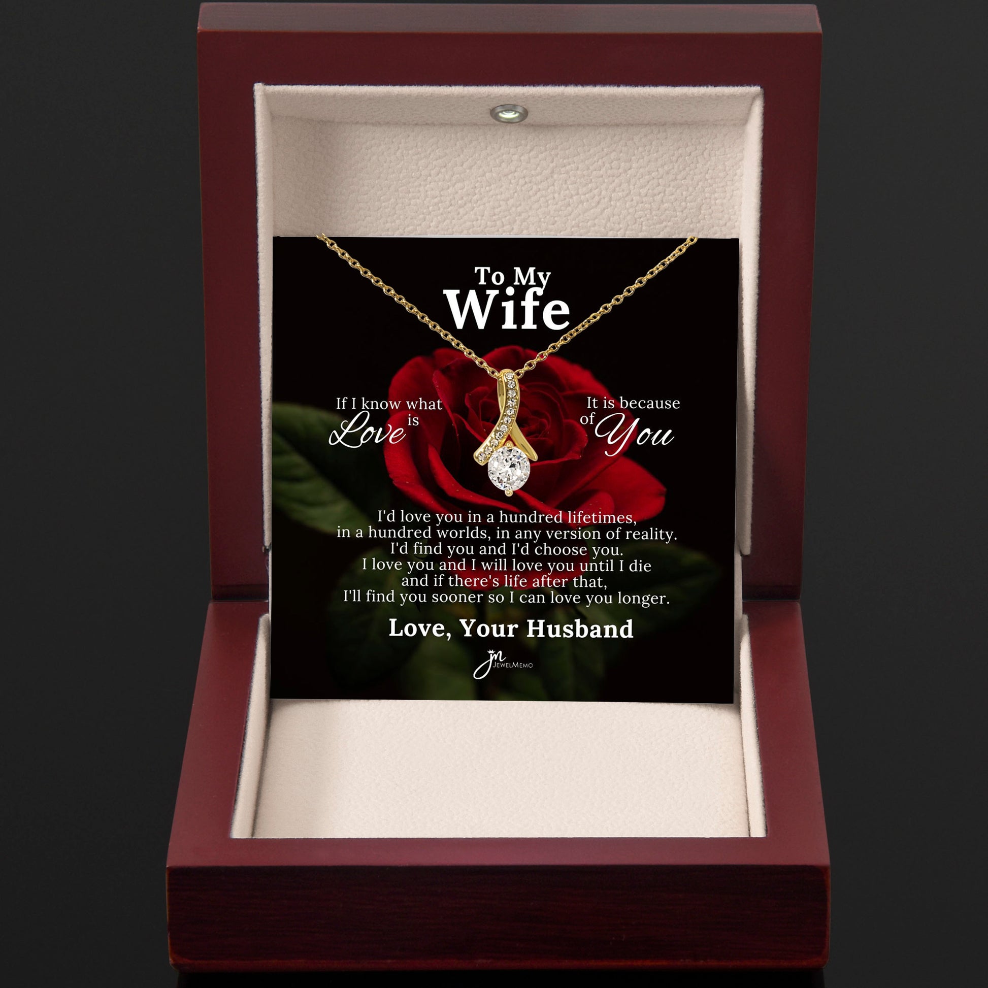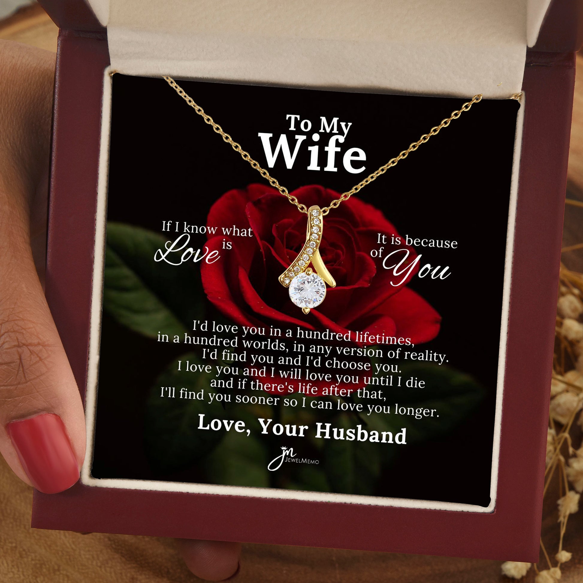 To My Beautiful Wife Love Knot Earring & Necklace Set - Red