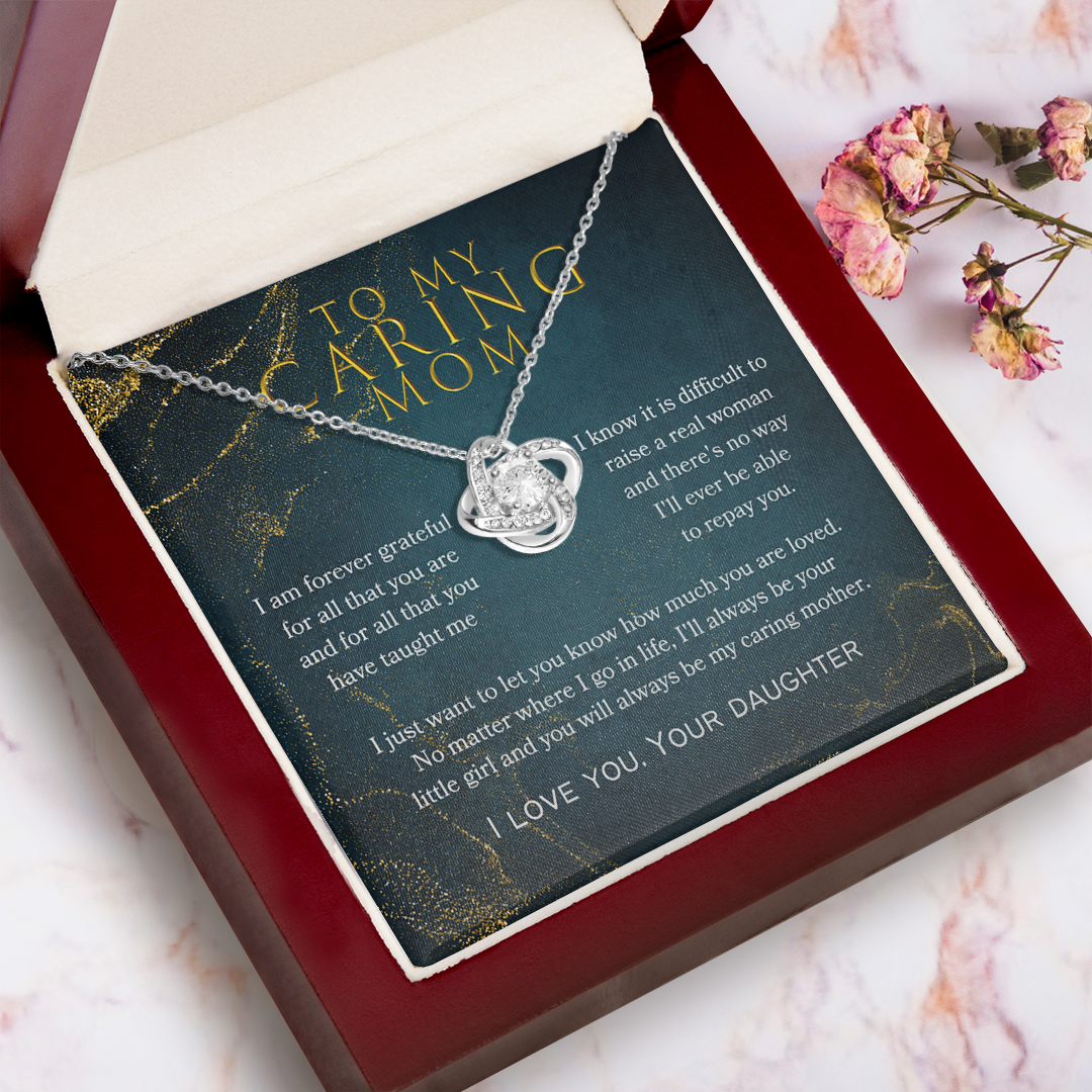 Imagine her reaction receiving this beautiful Love Knot Necklace. Representing an unbreakable bond between two souls, this piece features a beautiful pendant embellished with premium cubic zirconia crystals. Surprise your loved one with this gorgeous gift today!
