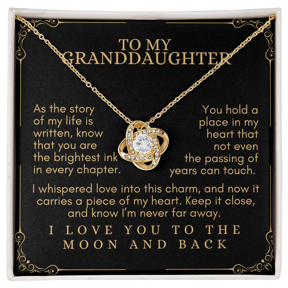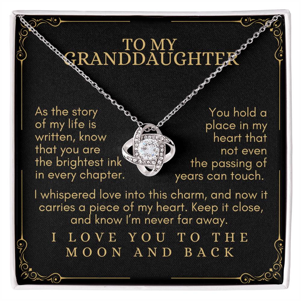 To My Granddaughter: Love Knot Necklace, Carrying My Heart Close Through Time (Black Background)