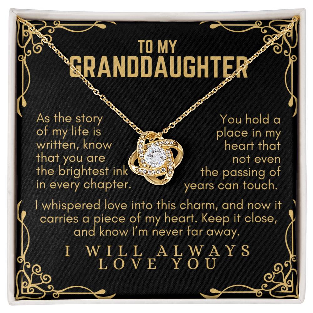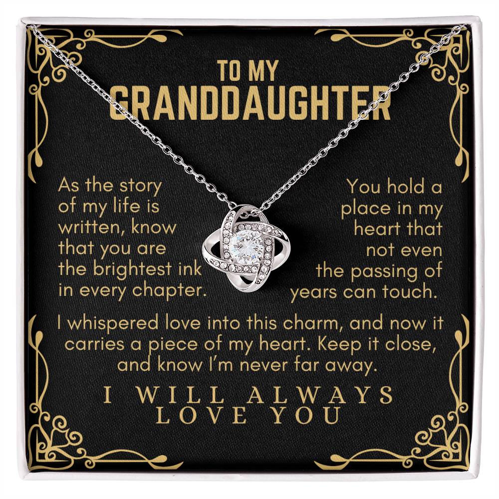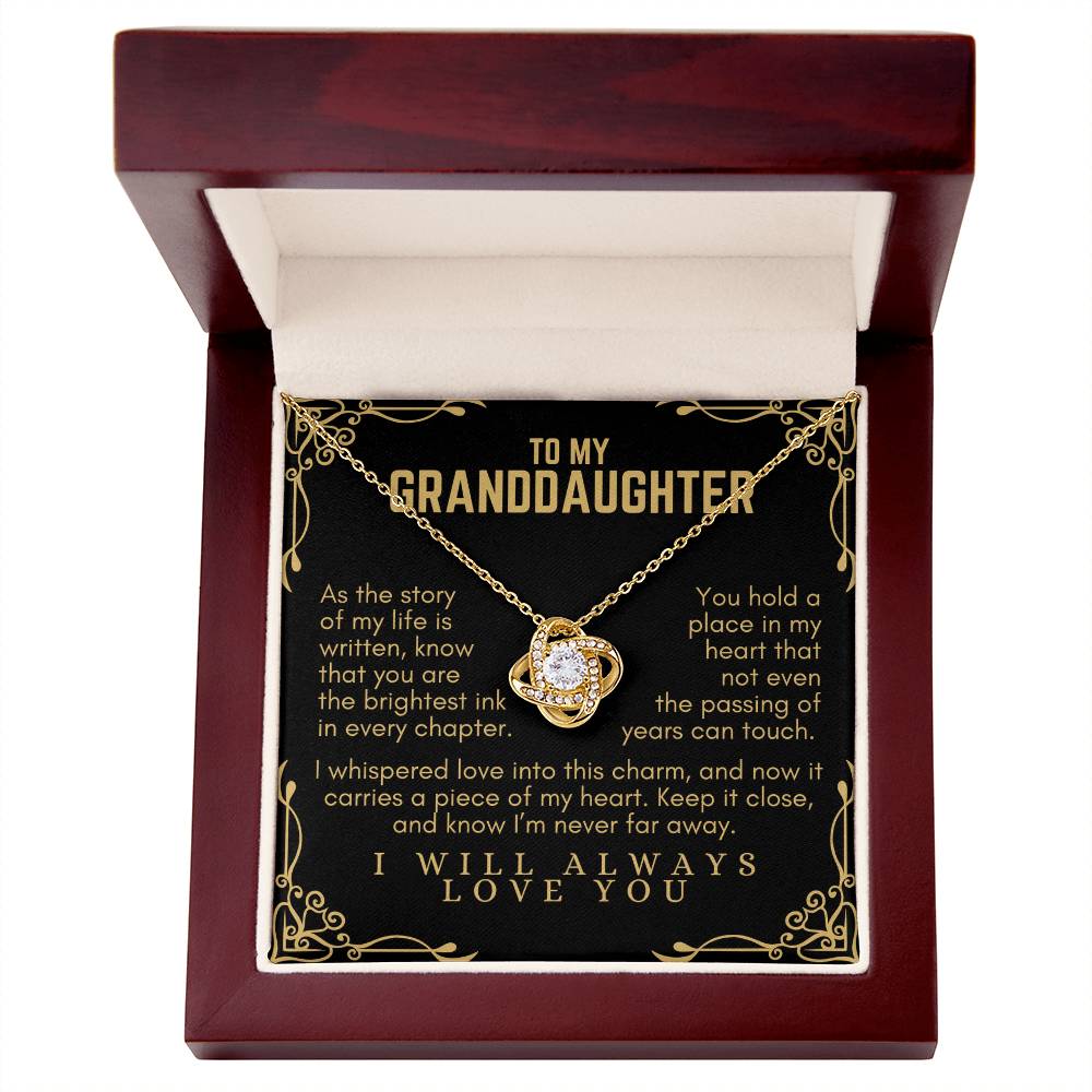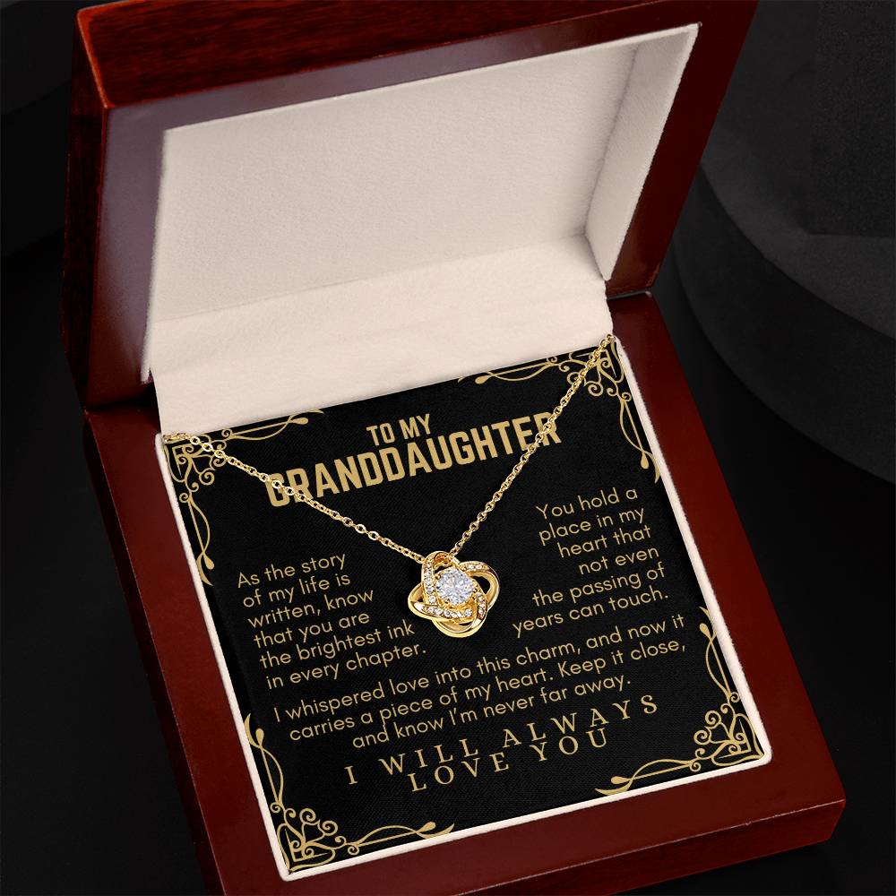 To My Granddaughter: Love Knot Necklace, Carrying My Heart Close Through Time (Black Background)
