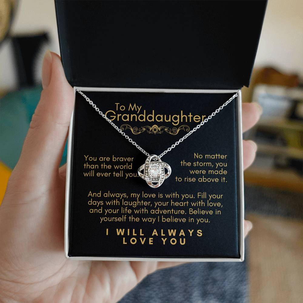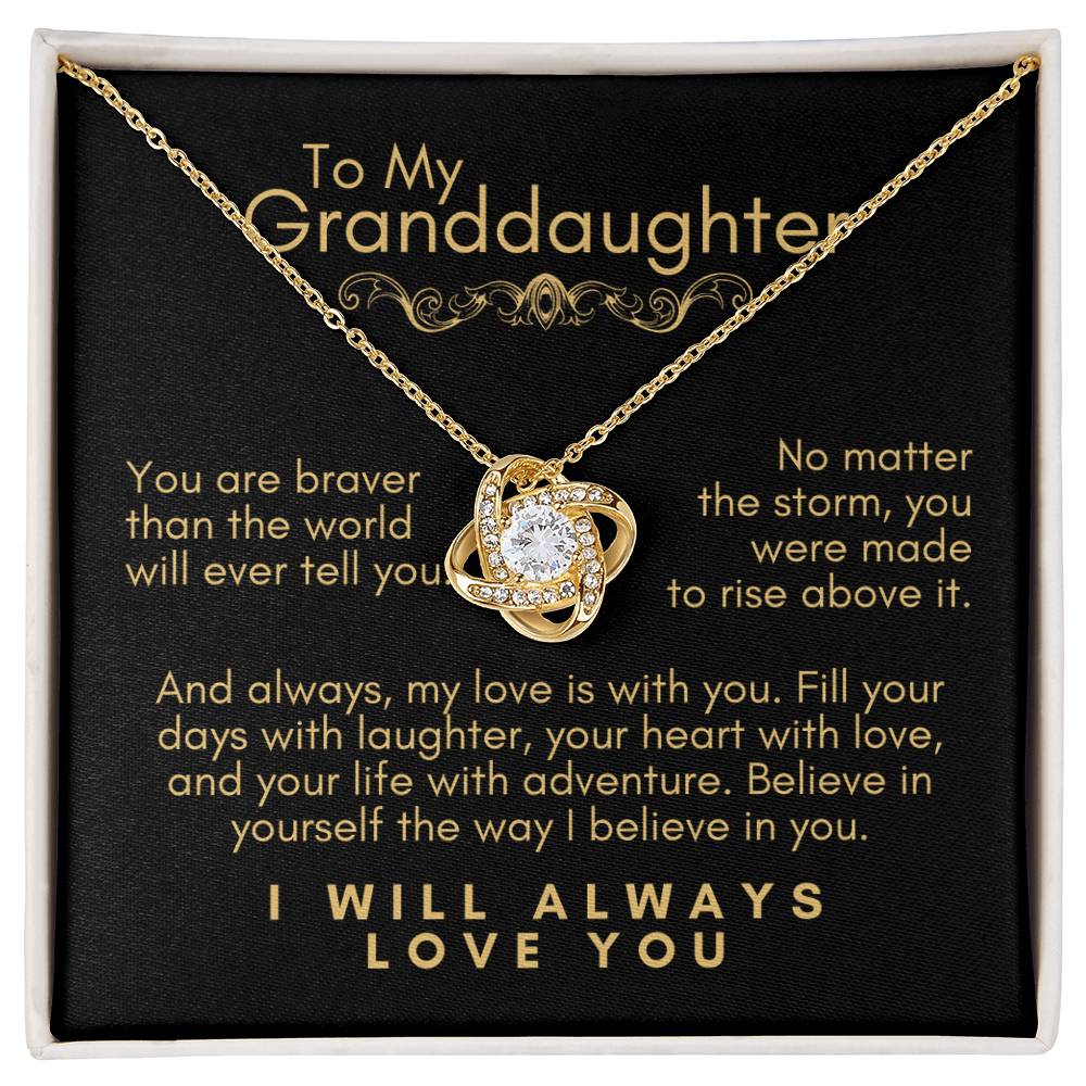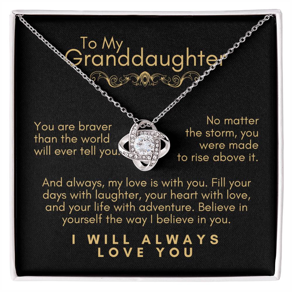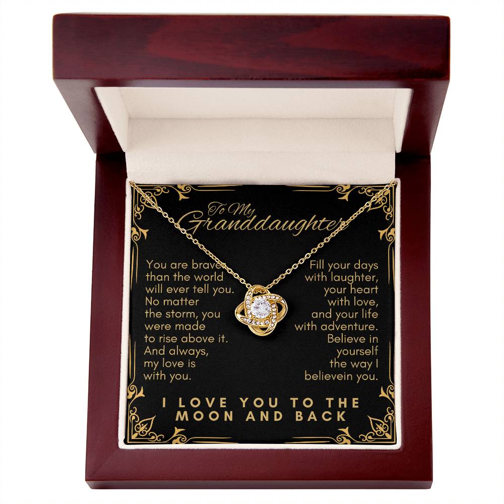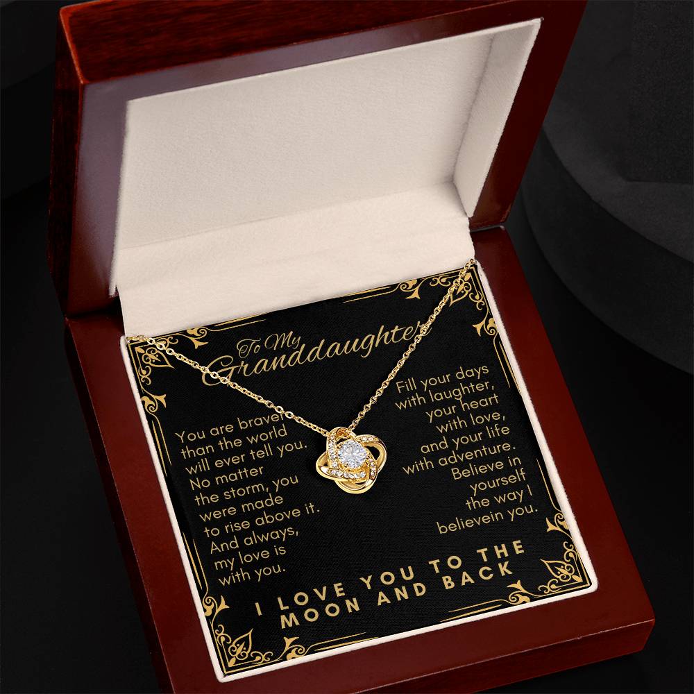 To My Granddaughter: Love Knot Necklace, a Reminder of Courage, Strength, and Unfailing Support (Black Background)