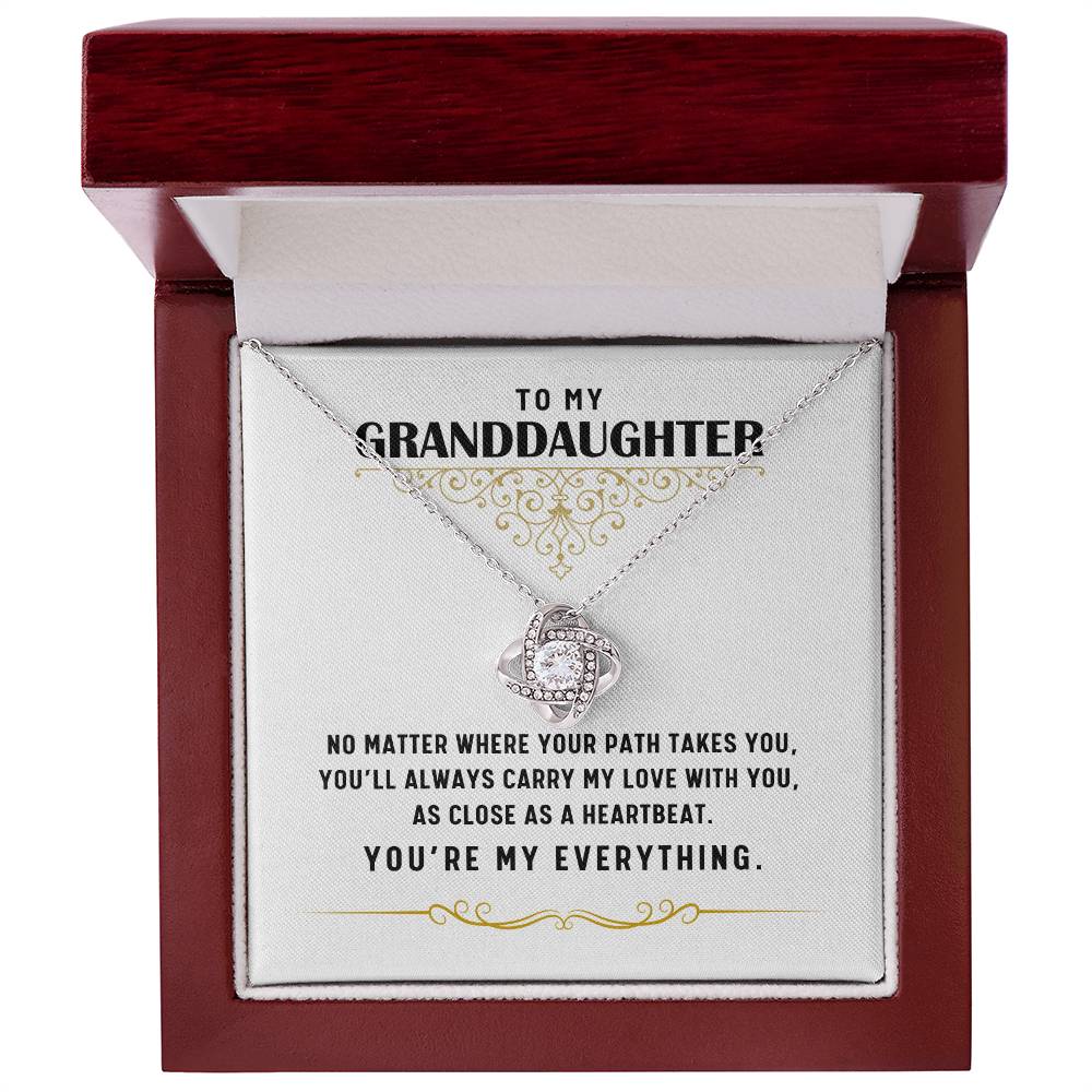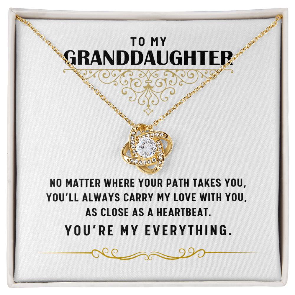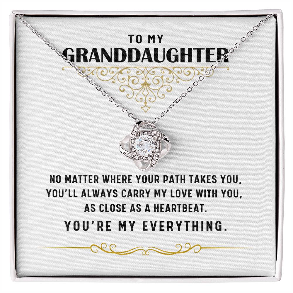 To My Granddaughter: Love Knot Necklace, Carry My Love Wherever Life Takes You.