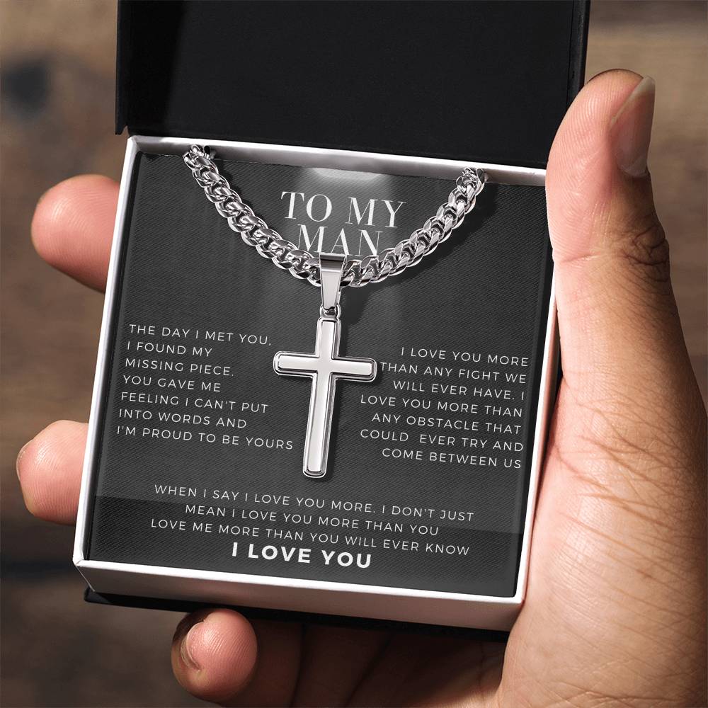To My Man Artisan Cross Necklace on Cuban Chain V2