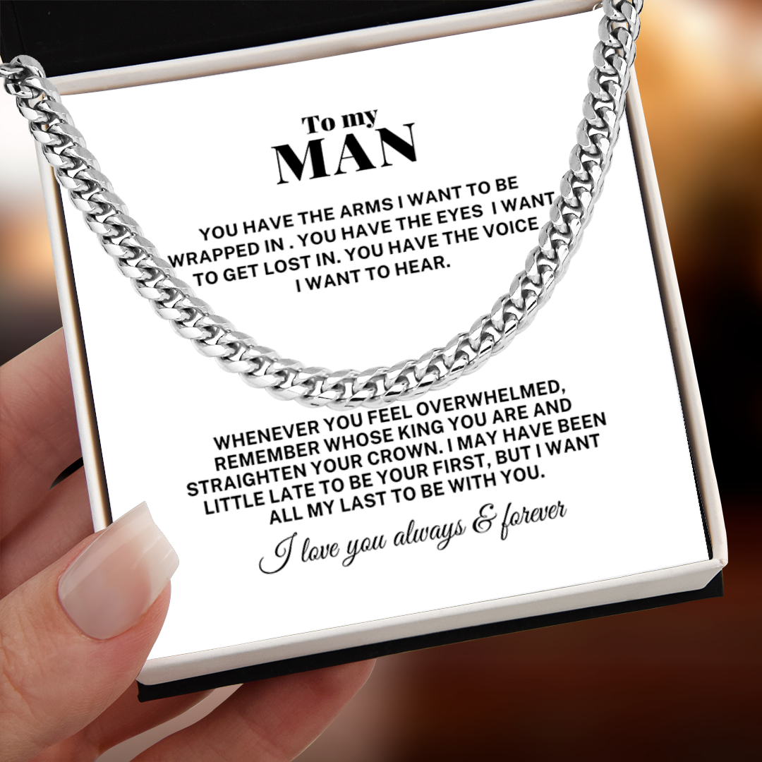 You have the arms I want to be wrapped in. You have the eyes I want to get lost in. You have the voice I want to hear. Whenever you feel overwhelmed, remember whose king you are and straighten your crown. I may have been little late to be your first, but I want all my last to be with you. I love you always & forever.