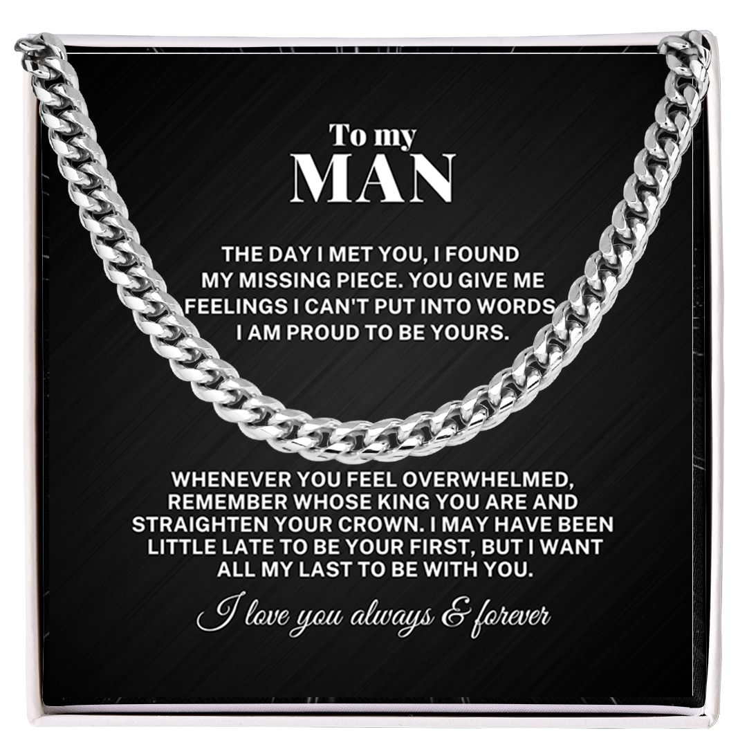 To My Man My Missing Piece Cuban Link Chain Necklace V1