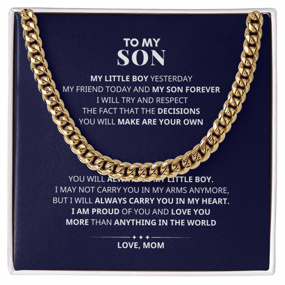 MY LITTLE BOY YESTERDAY MY FRIEND TODAY AND MY SON FOREVER I WILL TRY AND RESPECT THE FACT THAT THE DECISIONS YOU WILL MAKE ARE YOUR OWN