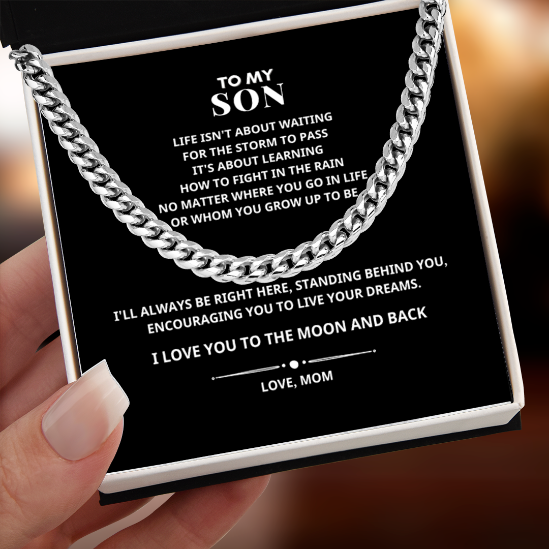 To My Son I Love You to The Moon and Back Cuban Link Chain