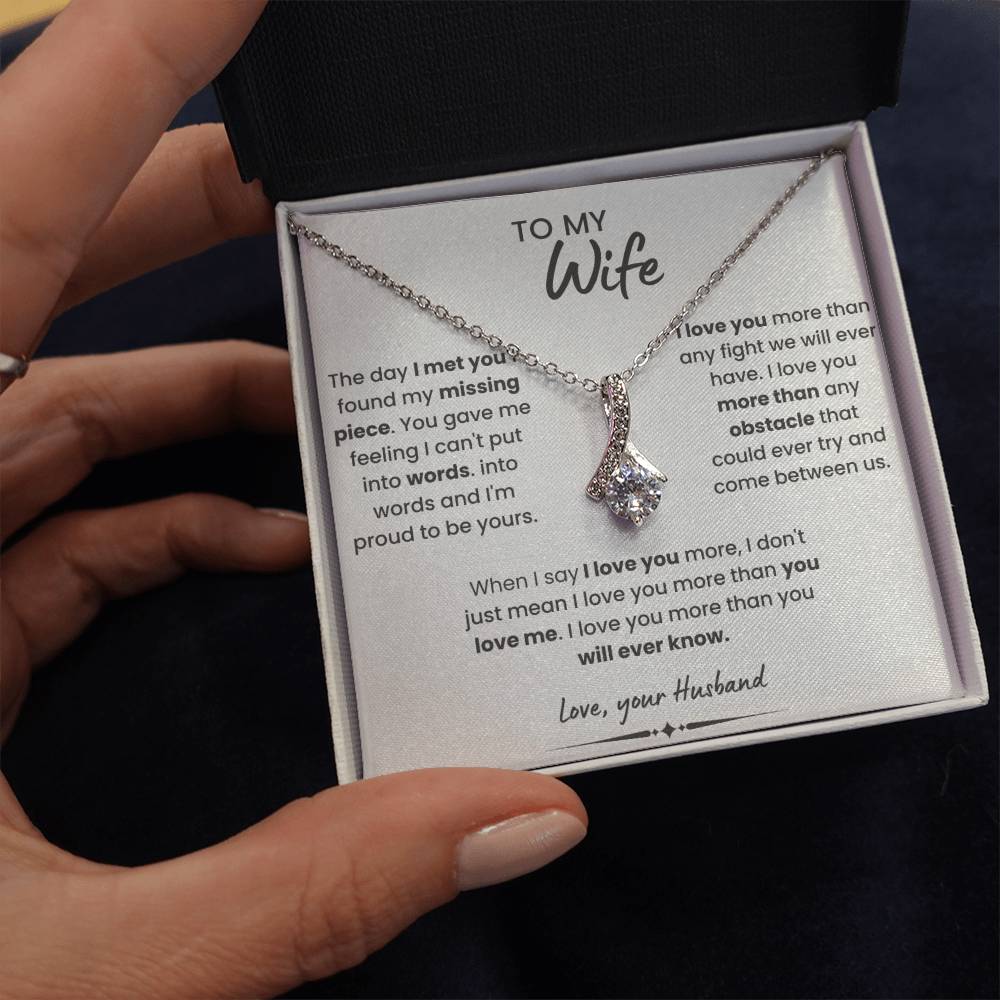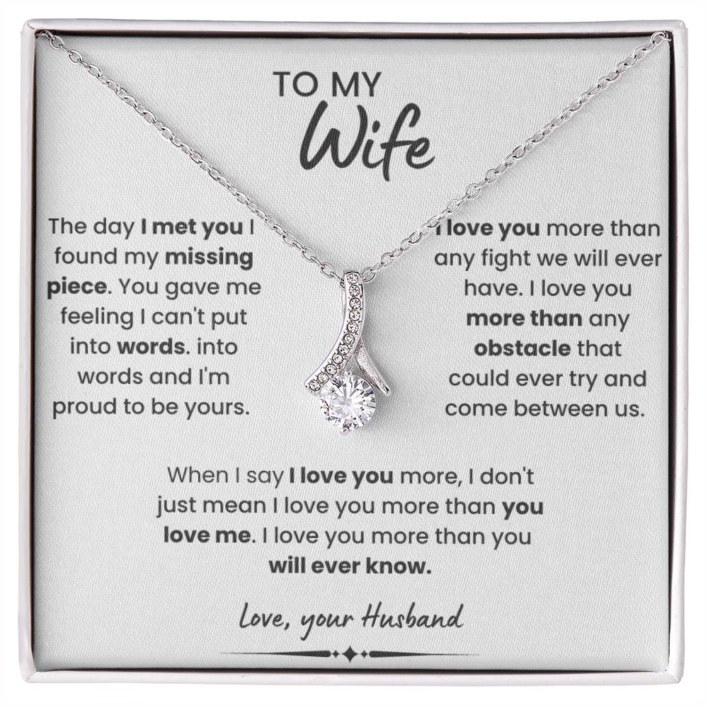 Imagine her reaction when she opens this stunning gift! The Alluring Beauty necklace features a petite ribbon shaped pendant that is sure to dazzle your special someone. Whether it's a birthday or anniversary, make sure to get her a gift she will love for years to come.