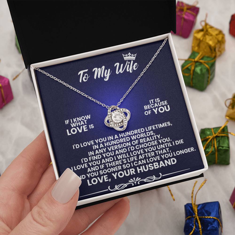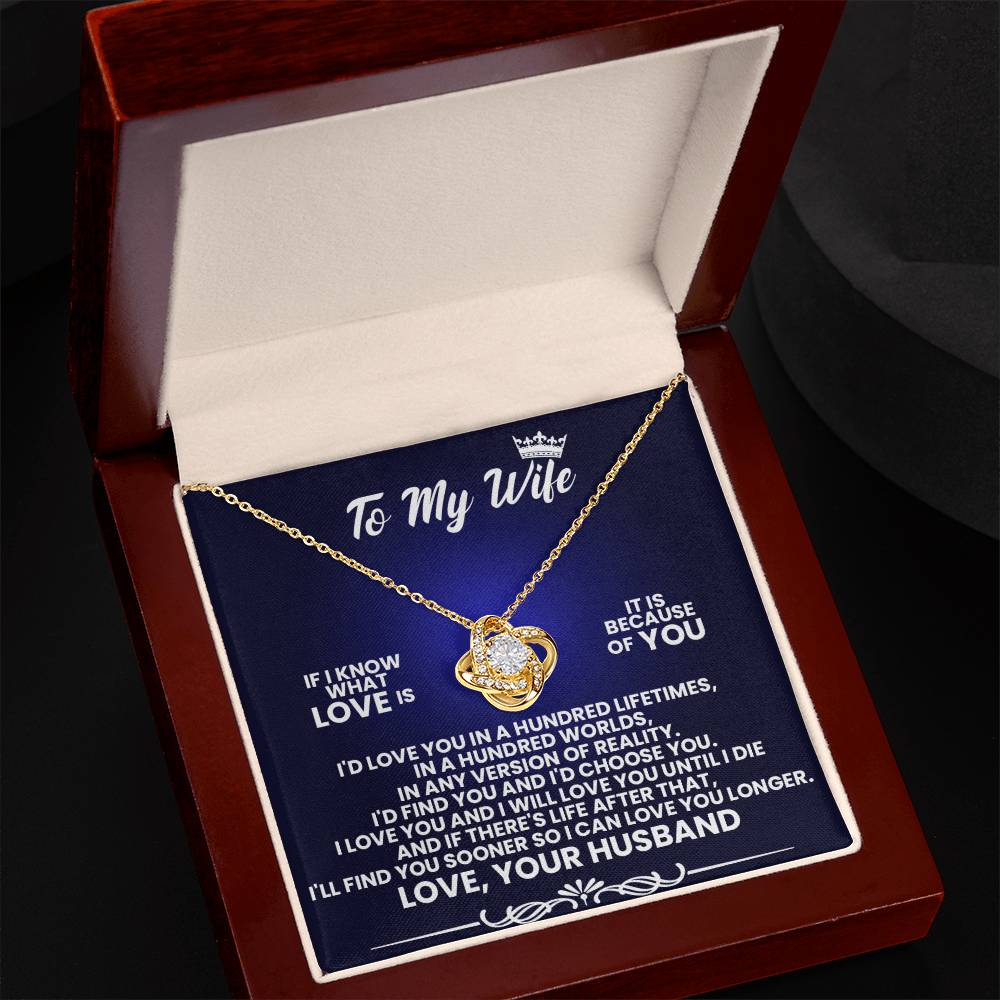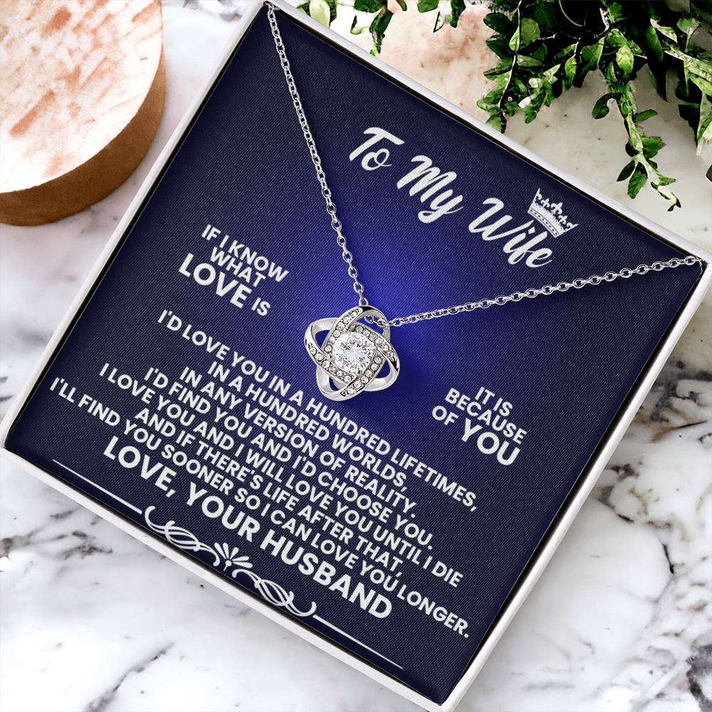 Imagine her reaction receiving this beautiful Love Knot Necklace. Representing an unbreakable bond between two souls, this piece features a beautiful pendant embellished with premium cubic zirconia crystals. Surprise your loved one with this gorgeous gift today!