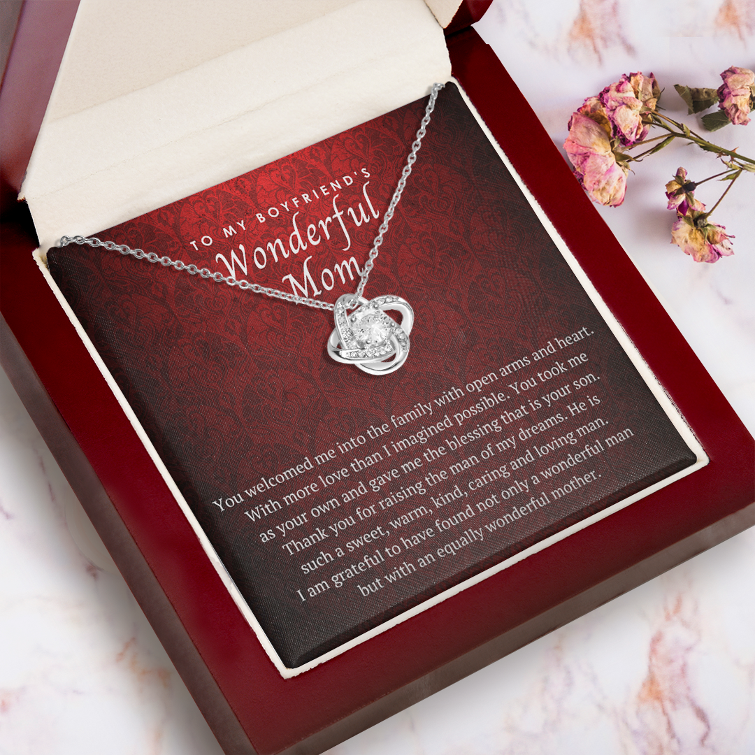 Imagine her reaction receiving this beautiful Love Knot Necklace. Representing an unbreakable bond between two souls, this piece features a beautiful pendant embellished with premium cubic zirconia crystals. Surprise your loved one with this gorgeous gift today!